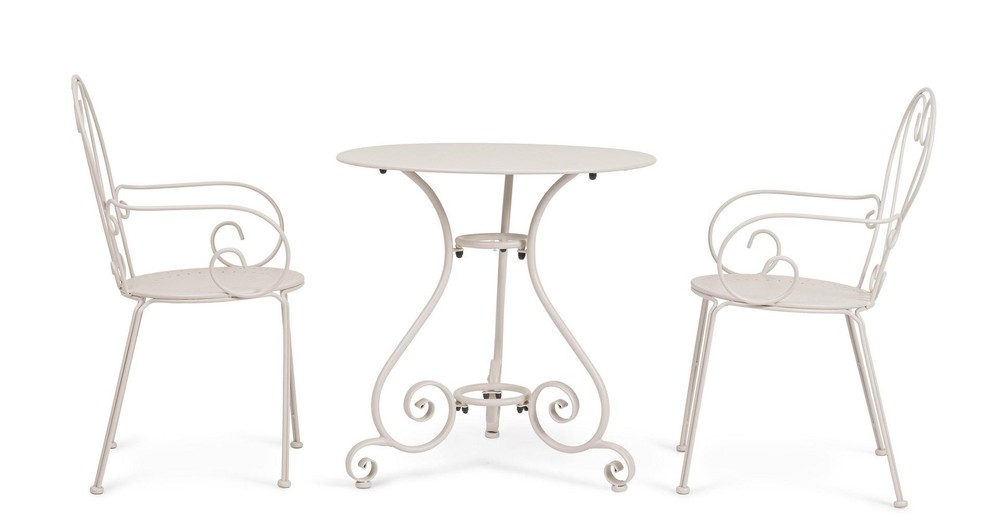 Tauchen Sie ein in den charmanten rustikalen Stil mit diesem Set aus vier dekorativen Stühlen, das traditionelles Design mit praktischer Funktionalität verbindet. Gefertigt aus robustem Stahl mit weißem mattem Finish und pulverbeschichtet, überzeugen die Stühle nicht nur durch ihre Stabilität und Langlebigkeit, sondern auch durch ihre Witterungsbeständigkeit und einfache Pflege – ideal für den Innenbereich oder überdachte Außenbereiche. Die herzförmige Rückenlehne verleiht jedem Stuhl einen verspielten, romantischen Akzent und macht das Set zu einem echten Hingucker in Ihrem Ess- oder Wohnbereich. Ergänzt wird das Design durch geschnörkelte Details, die den Stühlen einen klassischen, rustikalen Charme verleihen und ihnen eine elegante, handgefertigte Anmutung verleihen. Dieses Set vereint Ästhetik und Tradition und passt perfekt zu Landhaus-, Vintage- oder Shabby-Chic-Einrichtungen. Praktisch durchdacht ist die stapelbare Konstruktion: Sie können die Stühle bei Nichtgebrauch platzsparend übereinander stapeln und einfach verstauen – ideal für flexible Nutzung, bei Gästen oder zur Aufbewahrung in kleineren Räumen. Mit Maßen von ca. 49 cm Breite, 89 cm Höhe und 49 cm Tiefe bieten die Stühle eine komfortable Sitzhöhe und ergonomische Proportionen, sodass Sie entspannt und bequem Platz nehmen können. Dieses Set aus vier Stühlen ist die perfekte Wahl für Sie, wenn Sie rustikalen Charme, liebevolle Details und langlebige Materialien in einem stilvollen Möbelstück suchen, das sowohl dekorativ als auch funktional überzeugt.