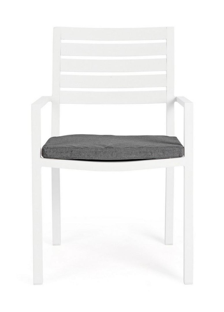 Entdecken Sie dieses elegante Set aus vier Stühlen, das modernes Design, hohen Sitzkomfort und praktische Alltagstauglichkeit perfekt miteinander verbindet. Das formschöne Gestell aus Aluminium in Weiß mit hochwertiger Pulverbeschichtung verleiht den Stühlen eine zeitlose, frische Optik und überzeugt zugleich durch Stabilität, Langlebigkeit und Witterungsbeständigkeit. Dank des leichten Materials lassen sich die Stühle mühelos bewegen und flexibel einsetzen. Für zusätzlichen Komfort sorgen die abziehbaren Sitzkissen aus Polyester in Grau, die einen stilvollen Kontrast zum weißen Gestell bilden. Das strapazierfähige Material ist wasserabweisend und pflegeleicht, sodass die Kissen auch bei gelegentlicher Feuchtigkeit oder im täglichen Gebrauch ihre Form und Farbe behalten. Bei Bedarf können die Bezüge einfach abgenommen und gereinigt werden – ideal für den Einsatz im Innen- wie auch im Außenbereich. Ein weiterer großer Vorteil dieses Stuhlsets ist die stapelbare Ausführung. So können Sie die Stühle bei Nichtgebrauch platzsparend übereinander stapeln und komfortabel verstauen, was sie besonders praktisch für Terrassen, Balkone, Gärten oder auch für den Einsatz bei Gästen macht. Mit ihren ergonomischen Maßen von ca. 56,5 cm Breite, 86,5 cm Höhe und 55 cm Tiefe bieten die Stühle eine angenehme Sitzposition und ausreichend Platz für entspanntes Verweilen. Ob beim gemeinsamen Essen, beim Kaffeetrinken oder bei geselligen Abenden im Freien – dieses Set aus vier Stühlen ist die ideale Wahl für Sie, wenn Sie Wert auf modernes Design, pflegeleichte Materialien und vielseitige Einsatzmöglichkeiten legen.