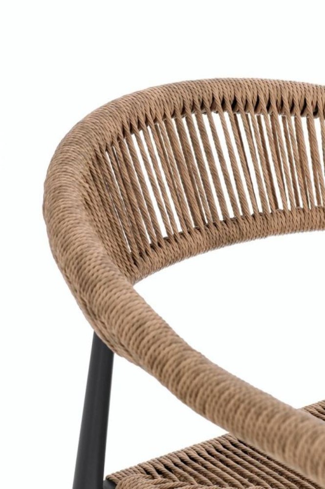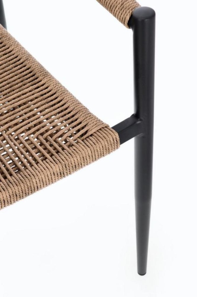 Entdecken Sie dieses stilvolle Set aus vier Stühlen, das modernes Design, Komfort und Langlebigkeit auf elegante Weise vereint. Das stabile Gestell aus pulverbeschichtetem Aluminium in Schwarz überzeugt durch Robustheit, Leichtigkeit und Witterungsbeständigkeit, sodass die Stühle sowohl für den Innen- als auch für den geschützten Außenbereich hervorragend geeignet sind. Die edle, matte Oberfläche verleiht den Stühlen eine zeitlose, hochwertige Optik, die sich harmonisch in verschiedene Einrichtungsstile einfügt. Ein besonderes Highlight ist die Rückenlehne und Sitzfläche aus unifarbenem Twist-Rattan in Braun, das den Stühlen einen natürlichen, warmen Charakter verleiht. Das geflochtene Material sorgt nicht nur für einen charmanten, modernen Look, sondern passt sich auch angenehm der Körperform an und bietet so eine ergonomische, bequeme Sitzfläche. Gleichzeitig ist das Rattan pflegeleicht und besonders strapazierfähig, wodurch es auch den Anforderungen des täglichen Gebrauchs mühelos standhält. Die Stühle sind zudem stapelbar, sodass Sie sie bei Nichtgebrauch platzsparend aufbewahren können. Dies macht sie besonders praktisch für Terrassen, Balkone oder Essbereiche mit begrenztem Platzangebot, ohne dass auf Komfort oder Design verzichtet werden muss. Mit Maßen von ca. 60 cm Breite, 78 cm Höhe und 56 cm Tiefe bieten die Stühle eine großzügige, ergonomische Sitzfläche, die zum entspannten Verweilen einlädt – sei es beim gemeinsamen Essen, beim Kaffee mit Freunden oder bei längeren Gesprächen im Freien. Dieses Set aus vier Stühlen ist die perfekte Wahl für Sie, wenn Sie ein Möbelstück suchen, das modernes Design, natürliche Materialien und hohe Funktionalität vereint. Die Kombination aus schwarzem Aluminiumgestell und braunem Twist-Rattan sorgt für einen zeitlosen Look, der Ihrem Ess- oder Außenbereich einen eleganten und einladenden Charakter verleiht.