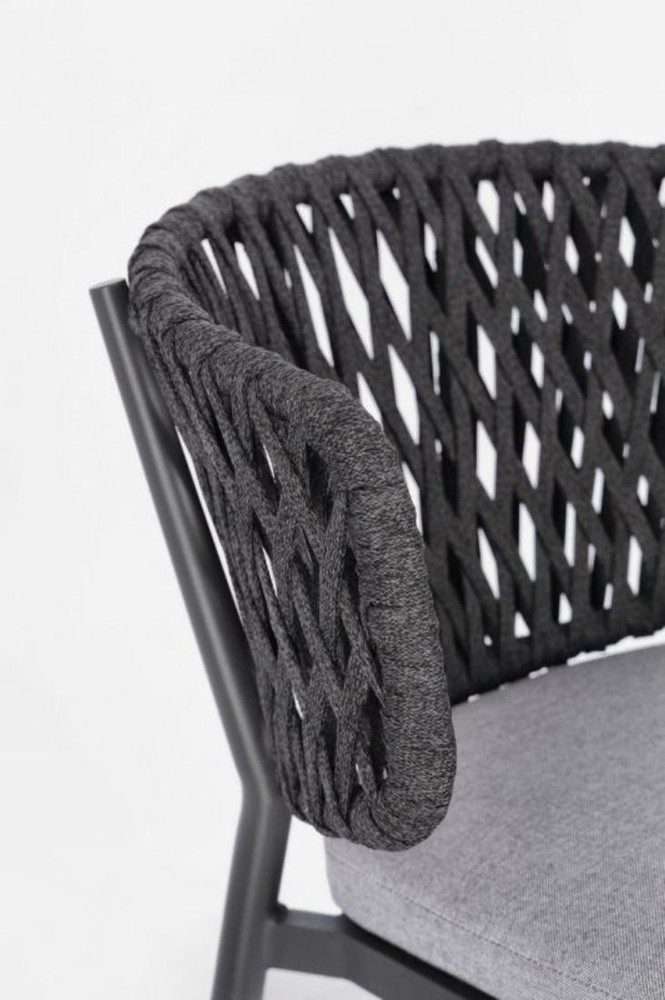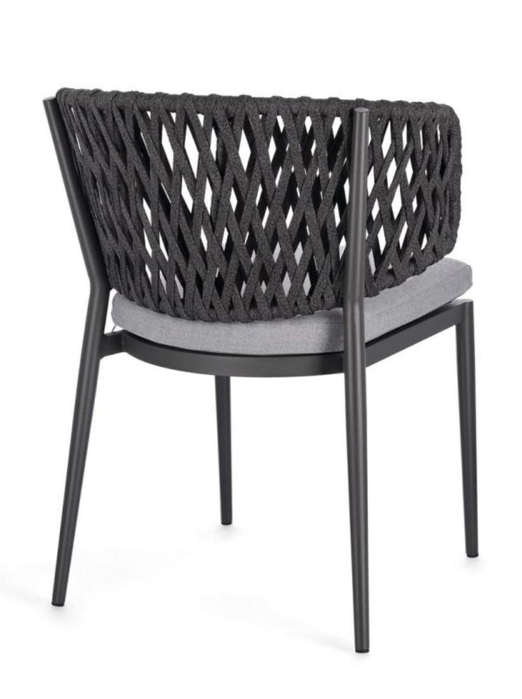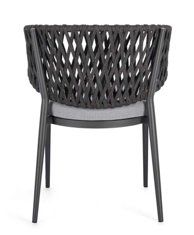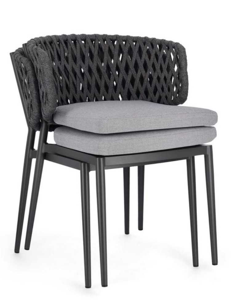Erleben Sie elegantes Design, zeitlose Farbgebung und höchsten Komfort mit diesem Set aus vier stilvollen Stühlen, das Funktionalität und moderne Ästhetik perfekt vereint. Das robuste Gestell aus pulverbeschichtetem Aluminium in Anthrazit überzeugt durch Stabilität, Langlebigkeit und Witterungsbeständigkeit, sodass die Stühle sowohl im Innenbereich als auch in geschützten Außenbereichen genutzt werden können. Die dezente Anthrazit-Farbgebung verleiht dem Set eine elegante, moderne Ausstrahlung, die sich harmonisch in unterschiedlichste Wohn- und Gartengestaltungen einfügt. Die Rückenlehne mit Geflecht aus Tetoron (Polyester) in Anthrazit sorgt für eine luftige, flexible Sitzfläche, die sich angenehm der Rückenform anpasst. Das hochwertige Geflecht ist besonders strapazierfähig und pflegeleicht, wodurch die Stühle auch im täglichen Gebrauch ihre Form und Optik behalten. Gleichzeitig verleiht die geflochtene Struktur dem Set einen modernen, leicht texturierten Look, der stilvolle Akzente in jedem Raum setzt. Für zusätzlichen Komfort sind die Stühle mit abziehbaren Sitzkissen aus wasserabweisendem Acrylstoff in Hellgrau ausgestattet. Diese Polsterung bietet eine weiche, angenehme Sitzfläche und ist gleichzeitig robust, pflegeleicht und für den gelegentlichen Außeneinsatz bestens geeignet. Die Kombination aus Anthrazit und Hellgrau wirkt besonders harmonisch und modern, wodurch das Set zeitlos und stilvoll erscheint. Ein weiterer Vorteil ist die stapelbare Bauweise. Bei Nichtgebrauch lassen sich die Stühle platzsparend übereinander stapeln, sodass sie einfach zu verstauen sind – ideal für Terrassen, Balkone oder Essbereiche mit begrenztem Platzangebot. Mit Maßen von ca. 64 cm Breite, 80 cm Höhe und 60 cm Tiefe bieten die Stühle großzügige, ergonomische Sitzflächen, die höchsten Komfort für entspannte Stunden garantieren. Dieses vierteilige Stuhlset ist die ideale Wahl für Sie, wenn Sie ein modernes, langlebiges und komfortables Möbelstück suchen, das durch hochwertige Materialien, dezentes Design und vielseitige Einsatzmöglichkeiten überzeugt.