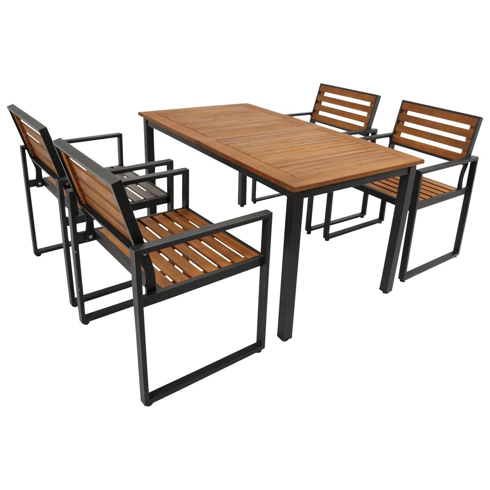 5-teilige Garnitur 150 x 88 x 204 cm Stahl Anthrazit Akazie