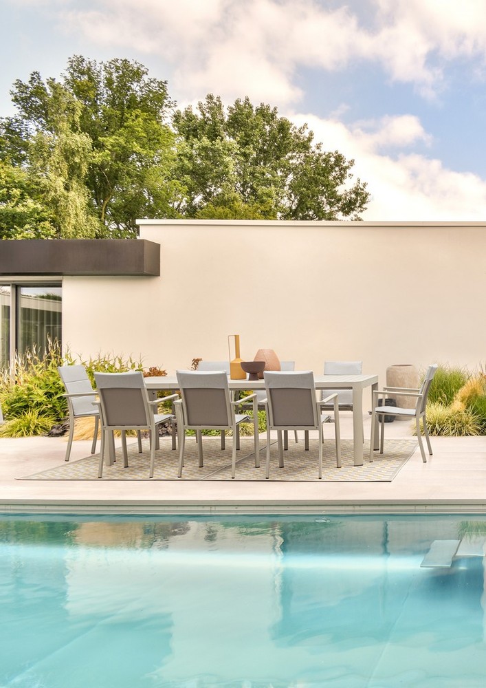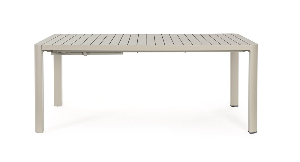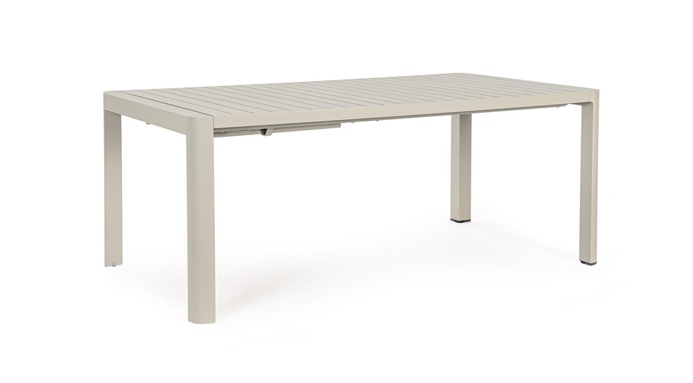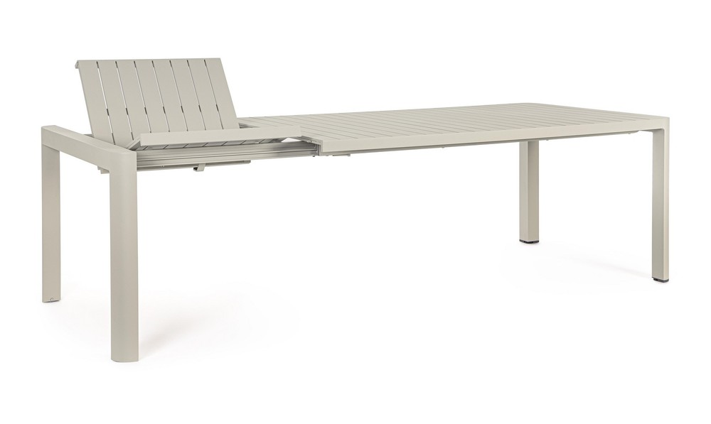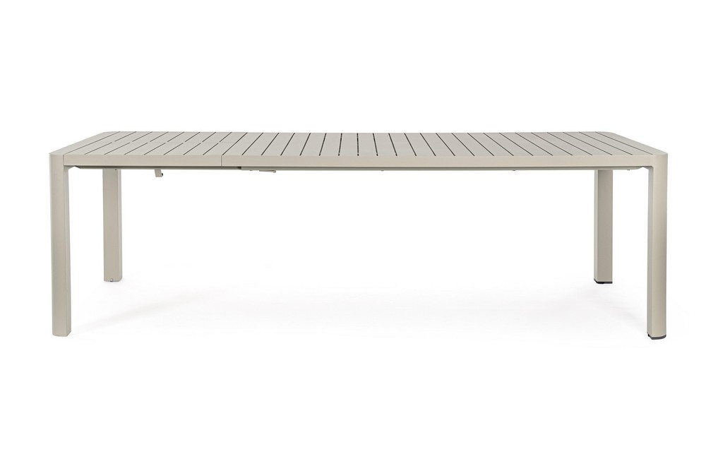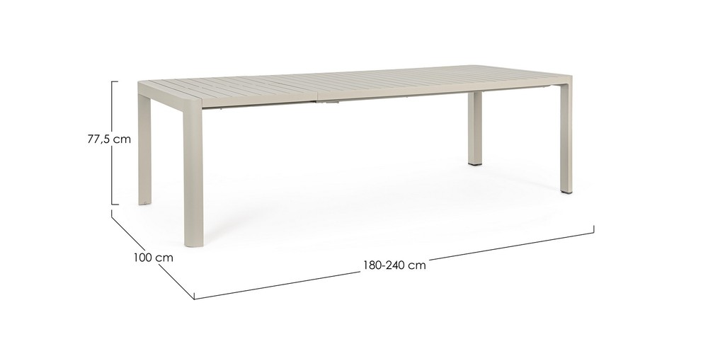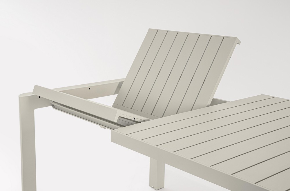 Verwandeln Sie Ihre Terrasse oder Ihren Garten in einen stilvollen und flexiblen Essbereich – mit diesem ausziehbaren Tisch für den Außenbereich, der modernes Design, Funktionalität und Langlebigkeit perfekt kombiniert. Das robuste Aluminiumgestell mit Pulverbeschichtung in elegantem Beige sorgt für Stabilität, Witterungsbeständigkeit und eine zeitlose Optik, die sich harmonisch in jede Outdoor-Umgebung einfügt. Die Tischplatte mit Lamellen verleiht dem Tisch eine natürliche, luftige Ausstrahlung und unterstützt gleichzeitig die Langlebigkeit des Materials. Sie ist pflegeleicht und widerstandsfähig gegenüber Sonne, Regen und Temperaturschwankungen – ideal für den dauerhaften Einsatz im Freien. Dank der zusammenschiebbaren Auszugsfunktion lässt sich der Tisch flexibel an die jeweilige Anzahl der Gäste anpassen. Mit den Maßen von ca. 100 × 77,5 × 180/240 cm (Breite × Höhe × Tiefe) bietet er in der Grundversion ausreichend Platz für gemütliche Mahlzeiten im kleineren Kreis, während er ausgezogen bis zu 240 cm groß ist und auch größere Zusammenkünfte stilvoll ermöglicht. Dieser ausziehbare Outdoor-Tisch vereint praktische Flexibilität, hochwertige Materialien und modernes Design. Ein langlebiges, elegantes Möbelstück, das Ihren Außenbereich aufwertet, Gäste einlädt und Ihnen gleichzeitig die Freiheit gibt, den Essbereich nach Bedarf zu erweitern – perfekt für gesellige Stunden im Freien.