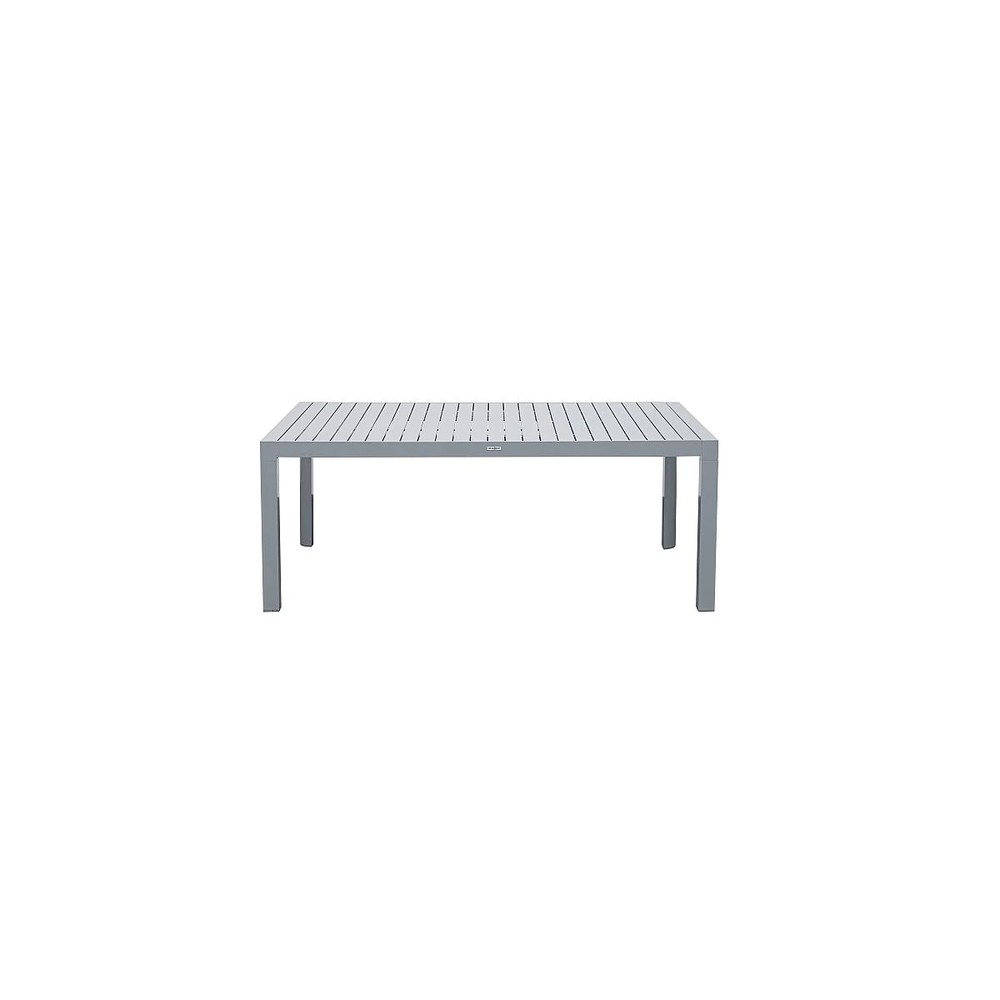 Dieser Ausziehtisch aus Aluminium vereint modernes Design, hochwertige Materialien und durchdachte Funktionalität. Mit seinem eleganten silbergrauen Finish und der klaren Linienführung fügt er sich stilvoll in Garten, Terrasse oder Balkon ein und schafft eine einladende Atmosphäre für Mahlzeiten im Freien. Gefertigt aus robustem Aluminium und pulverbeschichtet, überzeugt der Tisch durch seine Wetterbeständigkeit und Langlebigkeit. Die Oberfläche ist besonders widerstandsfähig gegenüber Korrosion, Kratzern und wechselnden Witterungsbedingungen, sodass Sie lange Freude an diesem pflegeleichten Möbelstück haben. Ein praktisches Highlight ist der Butterfly-Auszug, mit dem sich die Tischfläche mühelos erweitern lässt. So passt sich der Tisch flexibel Ihren Bedürfnissen an – ob für ein gemütliches Frühstück zu zweit oder für größere Runden mit Familie und Freunden. Die Tischplatte in moderner Lamellen-Optik verleiht dem Tisch eine luftige, elegante Ausstrahlung und sorgt dafür, dass Regenwasser schneller ablaufen kann. Die Beine mit gebogener Innenseite setzen dabei ein dezentes Design-Highlight und geben dem Tisch zusätzliche Stabilität und Eleganz. Mit seinen Maßen von ca. 195 cm Breite, 76 cm Höhe und 120 cm Tiefe bietet der Tisch im geschlossenen Zustand großzügig Platz. Durch den Butterfly-Auszug lässt sich die Breite bei Bedarf auf ca. 255 cm erweitern, sodass Sie bequem mehrere Gäste bewirten können. Ein eleganter und funktionaler Tisch, der stilvolles Design und praktische Erweiterbarkeit perfekt vereint.