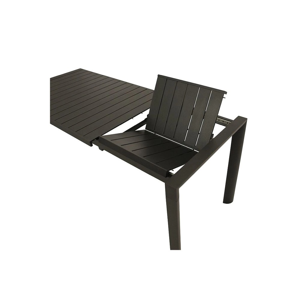 Dieser Ausziehtisch für den Außenbereich verbindet modernes Design mit hoher Funktionalität und ist die ideale Ergänzung für Ihre Terrasse, Ihren Balkon oder Ihren Garten. Mit seinem eleganten grauen Finish und der klaren Formensprache fügt sich der Tisch harmonisch in verschiedenste Outdoor-Einrichtungen ein und schafft eine stilvolle Atmosphäre für entspannte Stunden im Freien. Gefertigt aus leichtem und zugleich robustem Aluminium, überzeugt der Tisch durch seine hohe Stabilität und Langlebigkeit. Die Oberfläche ist pulverbeschichtet, wodurch sie besonders widerstandsfähig gegenüber Witterungseinflüssen, Korrosion und Kratzern ist. So können Sie sich lange an einem pflegeleichten und wetterfesten Gartenmöbelstück erfreuen. Ein praktisches Highlight ist die seitliche Butterfly-Verlängerung, mit der Sie die Tischfläche im Handumdrehen vergrößern können. Dadurch lässt sich der Tisch flexibel an Ihre Bedürfnisse anpassen – ob für ein gemütliches Frühstück zu zweit oder für gesellige Runden mit Familie und Freunden. Bei Bedarf erweitern Sie die Tischfläche einfach und schaffen zusätzlichen Platz für Speisen, Getränke oder Dekoration. Die Tischplatte in moderner Lamellen-Optik verleiht dem Tisch eine elegante und zugleich luftige Optik. Gleichzeitig sorgt diese Gestaltung dafür, dass Regenwasser besser ablaufen kann, sodass die Oberfläche schneller wieder trocknet und der Tisch rasch wieder einsatzbereit ist. Für zusätzliche Stabilität sorgen die justierbaren Füße, mit denen Sie kleine Unebenheiten auf Ihrem Balkon, Ihrer Terrasse oder im Garten problemlos ausgleichen können. So steht der Tisch stets sicher und komfortabel. Mit seinen Maßen von ca. 70 cm Breite, 75 cm Höhe und 117 cm Tiefe bietet der Tisch im Alltag eine kompakte und platzsparende Größe. Bei Bedarf lässt er sich dank der praktischen Butterfly-Verlängerung auf ca. 162 cm Tiefe erweitern, sodass Ihnen deutlich mehr Platz für Gäste, Speisen und Getränke zur Verfügung steht. Mit seiner gelungenen Kombination aus Flexibilität, Wetterbeständigkeit und modernem Design ist dieser Ausziehtisch die perfekte Wahl für Ihren Außenbereich.