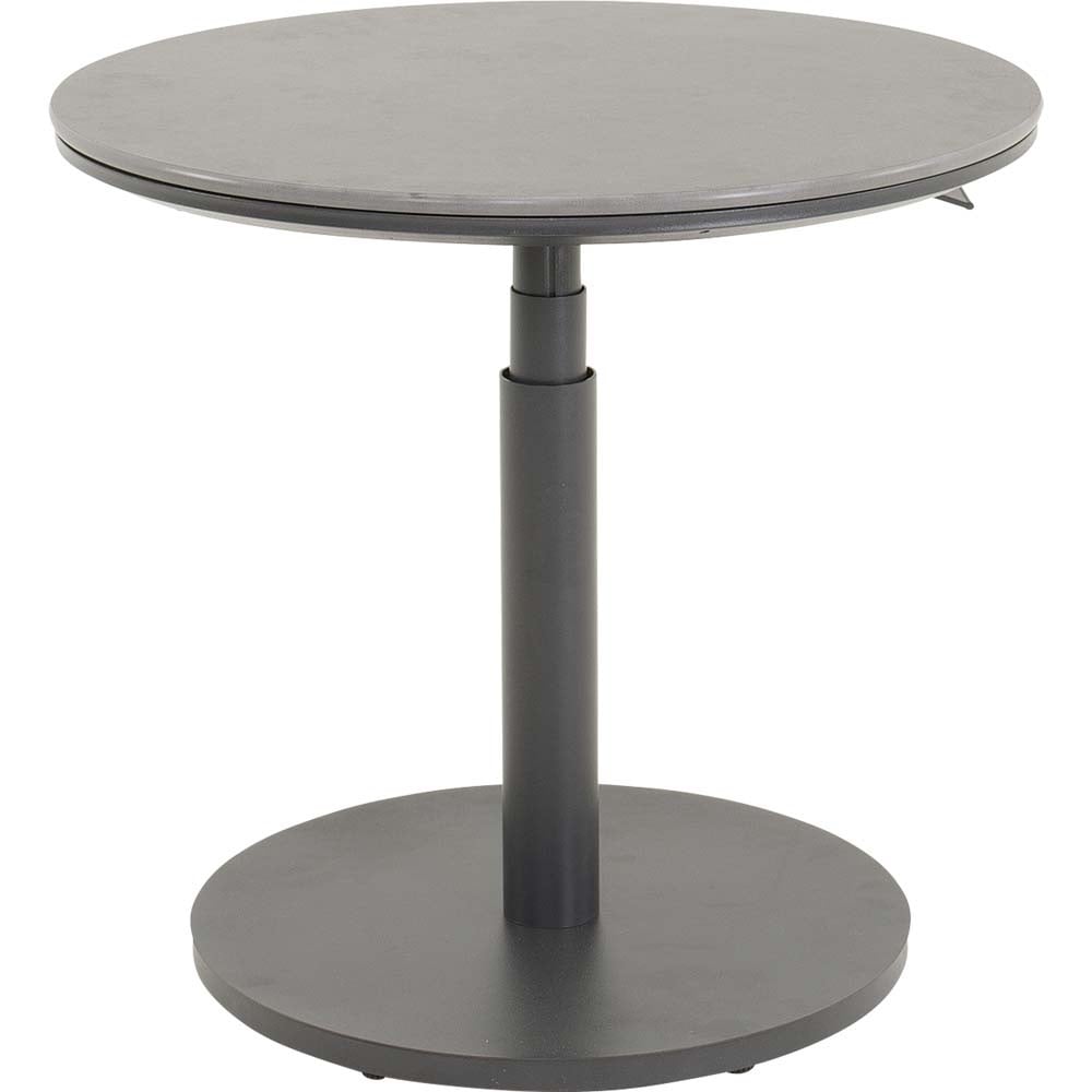 Setzen Sie stilvolle Akzente in Ihren Wohn- oder Outdoorbereich mit diesem modernen Beistelltisch, der durch seine hochwertige Materialwahl und seine flexible Funktionalität überzeugt. Das Gestell aus robustem Aluminium präsentiert sich in einem edlen Anthrazitton – eine Farbe, die zeitlos wirkt, sich spielend leicht kombinieren lässt und modernen Outdoor-Lounges ebenso gut steht wie klassischen Wohnbereichen. Die pulverbeschichtete Oberfläche sorgt zudem für eine langlebige, witterungsbeständige Qualität, die den Tisch zu einem verlässlichen Begleiter macht. Die runde Tischplatte aus Sinterstein in passendem Anthrazit ist nicht nur optisch ein Highlight, sondern auch technisch ein echtes Premiummerkmal. Sinterstein ist für seine außergewöhnliche Widerstandsfähigkeit bekannt: kratzfest, UV-beständig, hitzeunempfindlich und äußerst pflegeleicht. Die feine Steinstruktur verleiht dem Tisch eine exklusive, elegante Note und setzt luxuriöse Akzente, ohne dabei aufdringlich zu wirken. Ein besonderes Plus dieses Beistelltisches ist seine Höhenverstellbarkeit. Mit wenigen Handgriffen lässt sich die Höhe individuell anpassen – je nach Bedarf zwischen ca. 45 cm und 65 cm. So eignet er sich perfekt als flexible Ablage neben dem Loungesofa, als kleiner Esstisch für Snacks oder Drinks oder als stilvolles Deko-Element. Diese Vielseitigkeit macht ihn zum idealen Begleiter für moderne Outdoor-Landschaften, Terrassen oder Wohnräume, die Wert auf Anpassungsfähigkeit und stilvolle Details legen. Mit seinen Maßen von ca. 59 x 45/65 x 59 cm (Breite x Höhe x Tiefe) bietet der Tisch eine angenehme Größe, die ausreichend Abstellfläche bereitstellt, dabei aber leicht und mobil bleibt. Durch seine harmonische, runde Form fügt er sich mühelos in jede Umgebung ein und bringt eine weiche, moderne Linienführung in Ihr Ambiente. Dieser Beistelltisch verbindet elegantes Design mit praktischer Funktion und hoher Materialqualität – ein stilvolles Statement für alle, die flexible Lösungen und zeitgemäße Ästhetik schätzen.