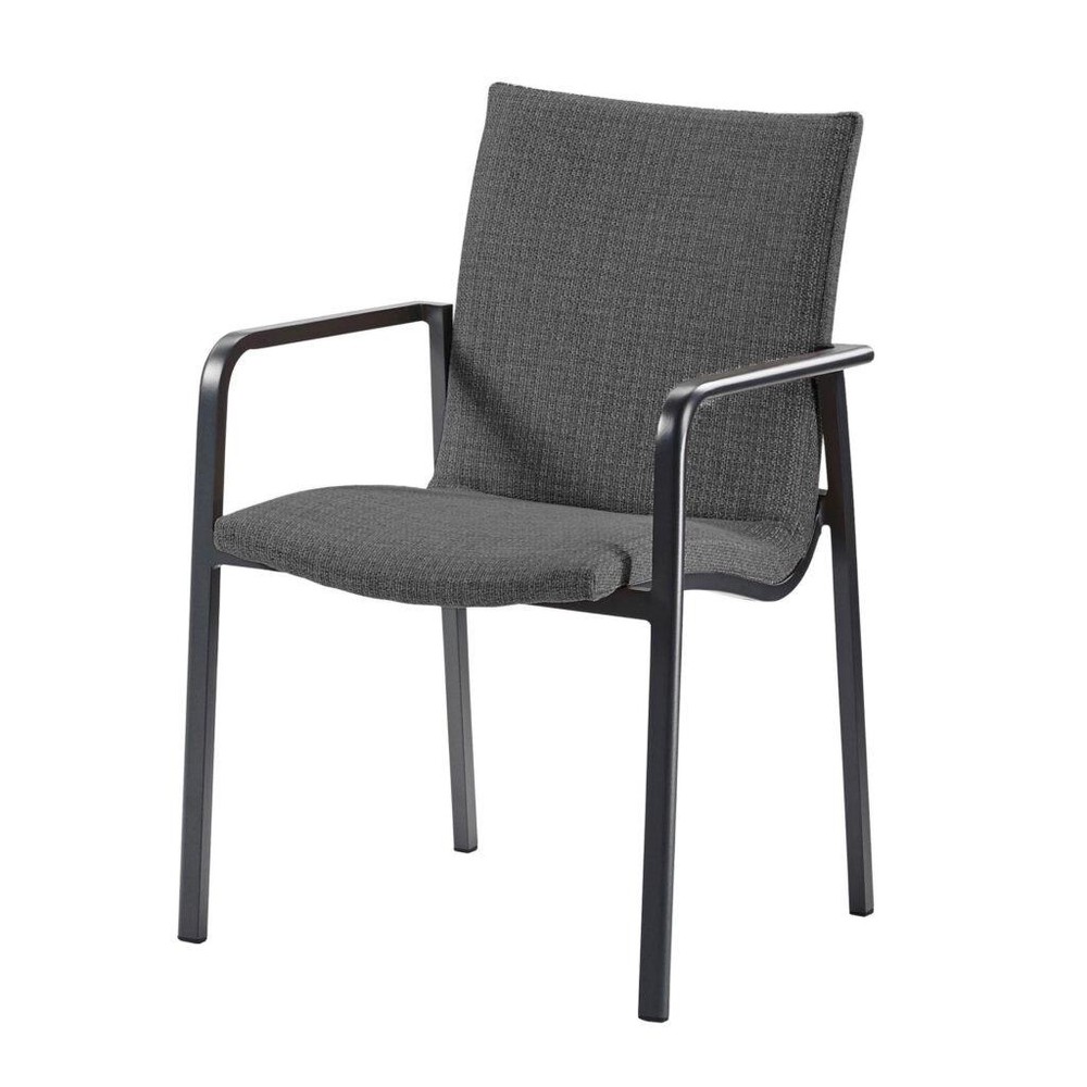 Entdecken Sie den perfekten Dining-Sessel für Ihren Außenbereich! Dieser stilvolle Sessel vereint modernes Design mit praktischen Eigenschaften. Das robuste Gestell aus anthrazitfarbenem Aluminium sorgt für Stabilität und Langlebigkeit, während der Sitz aus hochwertigem Outdoorstoff in elegantem Grau sowohl Komfort als auch Wetterbeständigkeit bietet. Mit einer Tragfähigkeit von bis zu 125 kg ist dieser Sessel ideal für gesellige Abende im Freien. Zudem lässt er sich platzsparend stapeln, was ihn zur idealen Wahl für kleine Balkone oder Terrassen macht. Verleihen Sie Ihrem Außenbereich eine geschmackvolle Note mit diesem vielseitigen Dining-Sessel!