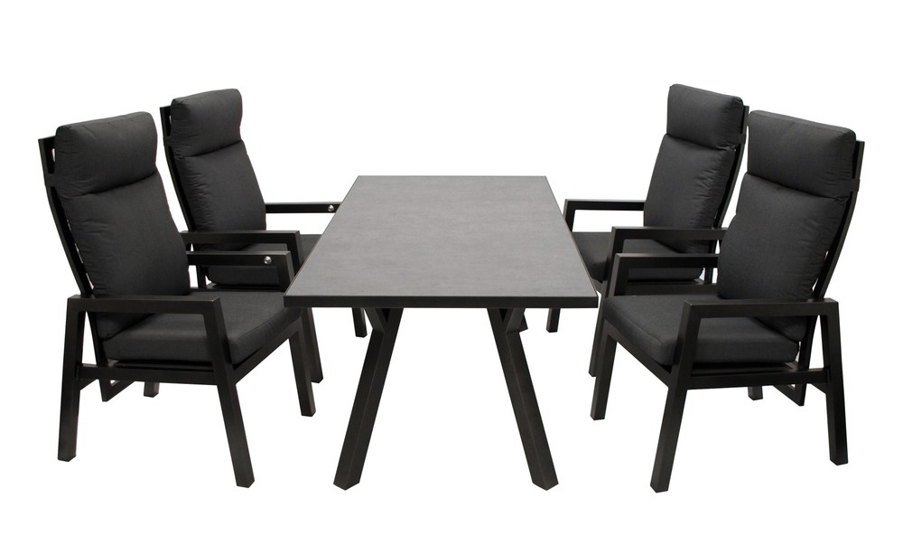 Diese 5-teilige Gartengarnitur verbindet Komfort mit stilvollem Design. Die vier Stühle aus robustem Aluminium und Polyester-Polster bieten einen hohen Sitzkomfort. Perfekt für gemütliche Grillabende mit Freunden. Ein besonderes Highlight ist die Tischplatte aus Sicherheitsglas, welche nicht nur gut aussieht, sondern auch sehr praktisch ist, da sie leicht zu reinigen ist.