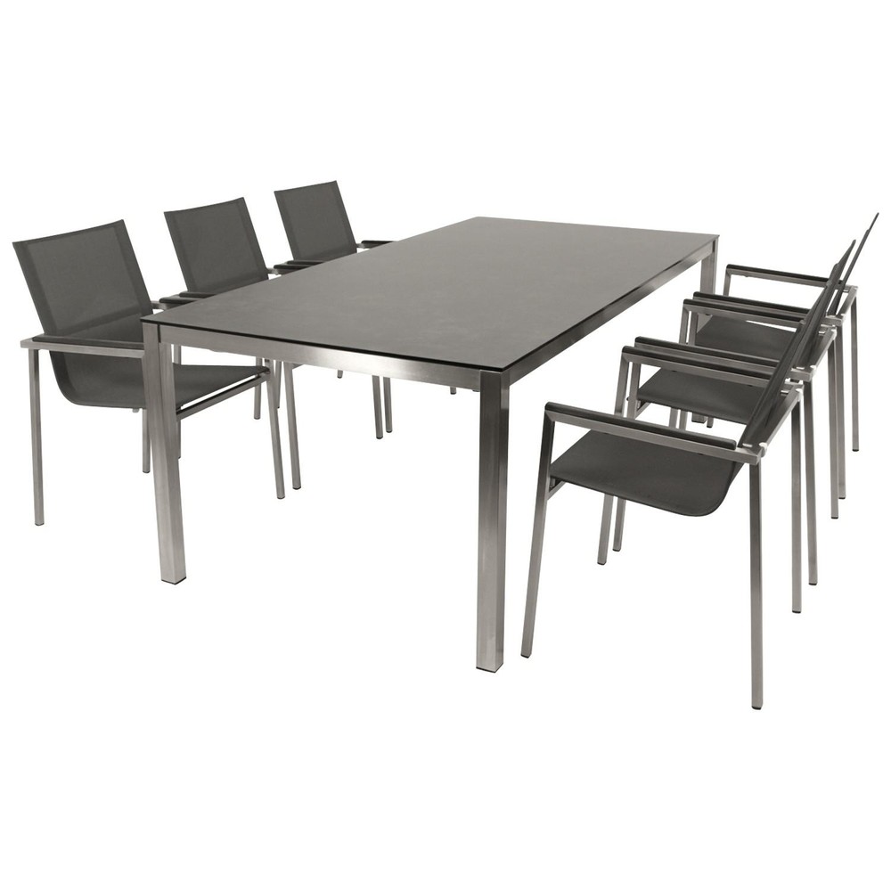 Gartengarnitur 7-teilig 213 x 87 x 200 cm Edelstahl Glas Anthrazit