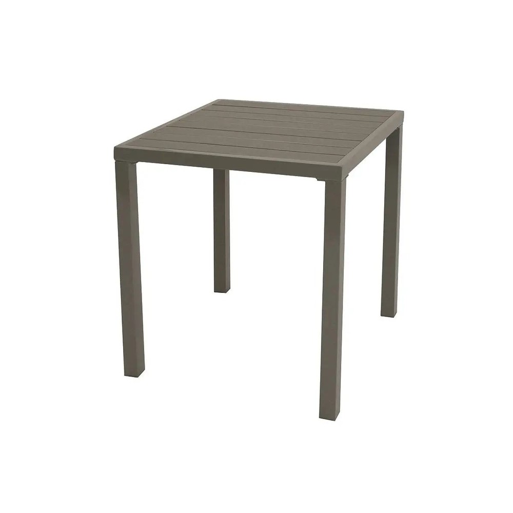 Dieser kompakte Gartentisch überzeugt durch modernes Design, stabile Verarbeitung und praktische Details. Das Gestell aus Metall mit grauem Finish sorgt für hohe Stabilität und Langlebigkeit, während die pulverbeschichtete Oberfläche zusätzlichen Schutz gegen Witterungseinflüsse bietet. So können Sie den Tisch bedenkenlos im Außenbereich einsetzen, ohne dass Rost oder Korrosion die Optik beeinträchtigen. Die Tischplatte hochwertigem Grau verleiht dem Möbelstück eine natürliche Anmutung bei gleichzeitig pflegeleichter Handhabung. Die Rillenstruktur auf der Oberfläche sorgt nicht nur für ein attraktives, strukturiertes Erscheinungsbild, sondern verhindert auch, dass Wasser sich länger auf der Platte sammelt, sodass sie schneller abtrocknet und wieder einsatzbereit ist. Mit seinen Maßen von ca. 60 cm Breite, 73 cm Höhe und 60 cm Tiefe bietet der quadratische Tisch ausreichend Platz für zwei Personen, Snacks, Getränke oder Dekoration, ohne dabei viel Stellfläche zu beanspruchen. Durch die kompakte Bauweise eignet er sich hervorragend für Balkone, kleine Terrassen oder als Ergänzung zu größeren Gartenmöbelgruppen. Ein stabiler, stilvoller und pflegeleichter Gartentisch, der funktionales Design mit modernem Grau perfekt kombiniert.