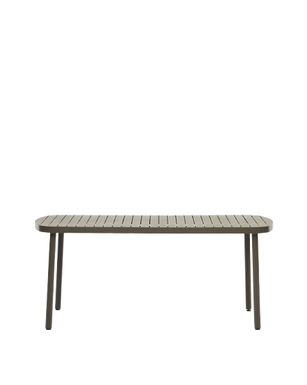 Robust und standfest. Das zeitlose Design des Tisches zeichnet sich durch schichte Eleganz aus und passt perfekt zu verschiedenen Einrichtungsstilen und in jeden Außenbereich. Dieser Tisch ist die ideale Wahl für ein stilvolles und vielseitiges Wohnerlebnis. Mit der großzügigen Tischplatte bietet dieser Tisch ausreichend Platz für bis zu sechs Personen. Die Oberfläche des Tisches ist leicht zu reinigen und somit sehr pflegeleicht. Das pulverbeschichtete Aluminium sorgt für Stabilität und Haltbarkeit.