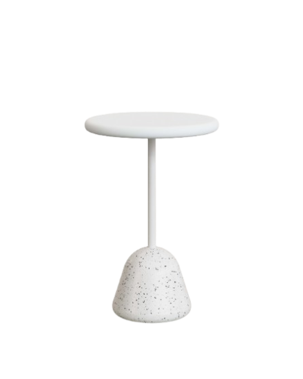 Hoher runder Outdoor-Tisch Saura 70.0 x 96 x 70.0 Zement Terrazzo Weiß