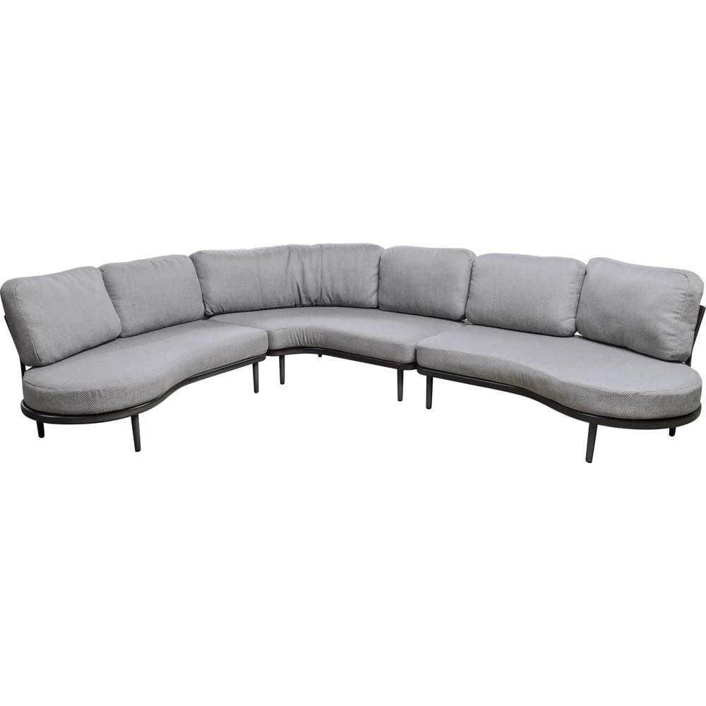 Das Gestell aller Elemente besteht aus hochwertigem Aluminium mit einer stilvollen schwarzen Pulverbeschichtung. Diese sorgt nicht nur für eine moderne, klare Optik, sondern macht das Set gleichzeitig äußerst robust, witterungsbeständig und pflegeleicht. Ein optisches Highlight bilden die dunklegrauen Seilverflechtungen an den Rückenlehnen, die dem Design eine raffinierte Leichtigkeit verleihen und zugleich für ein angenehmes, atmungsaktives Sitzgefühl sorgen. Für höchsten Komfort ist jedes Sofa mit einem weich gepolsterten Sitzkissen ausgestattet. Die beiden 2-Sitzer-Sofas verfügen zusätzlich über jeweils zwei passende Rückenlehnenkissen. Das Ecksofa bietet eine besonders gemütliche Gestaltung mit einem großen Rückenkissen und einem weiteren Kissen im Format der 2-Sitzer-Kissen. Alle Kissen bestehen aus hochwertigem Olefin in elegantem Grau – einem Outdoor-Stoff, der für seine UV-Beständigkeit, Langlebigkeit und angenehme Haptik bekannt ist. Dieses Lounge-Eckset bietet eine perfekte Balance aus Design, Komfort und Qualität. Die Kombination aus klaren Linien, eleganten Farben und strapazierfähigen Materialien macht es zu einem stilvollen Mittelpunkt jeder Outdoor-Oase – ein Ort, an dem man gerne verweilt und sich wohlfühlt.