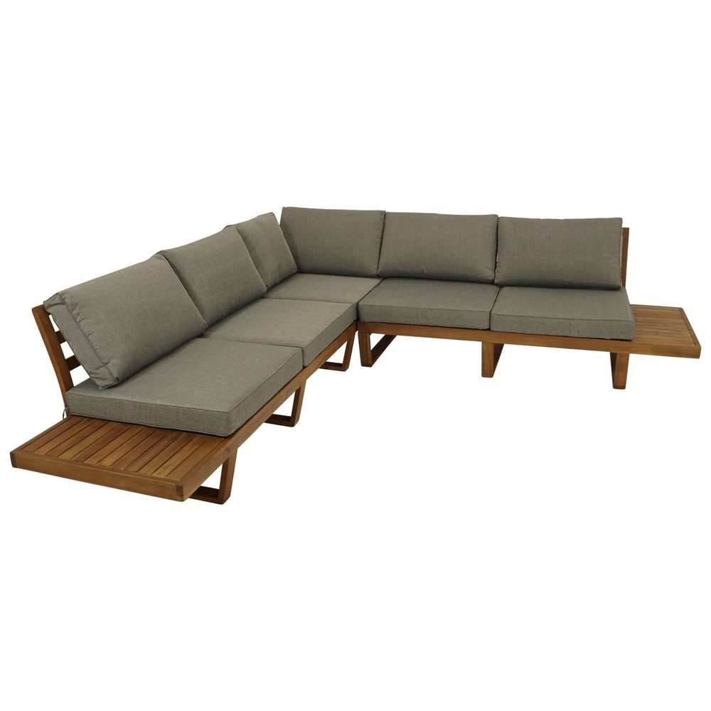 Die langen Sommernächte können mit diesem rustikalen Lounge-Set auf jeden Fall kommen. Es besteht aus einem Sofa mit Eckteil und Polstern, einem quadratischen Tisch. Tisch- und Sofagestelle sind aus Akazie. Die Rücken- und Sitzkissen haben Bezüge aus 100 % Polyester in Grau. Perfekt für schöne Abende mit Freunden und Familie, oder sonnige Nachmittage.
