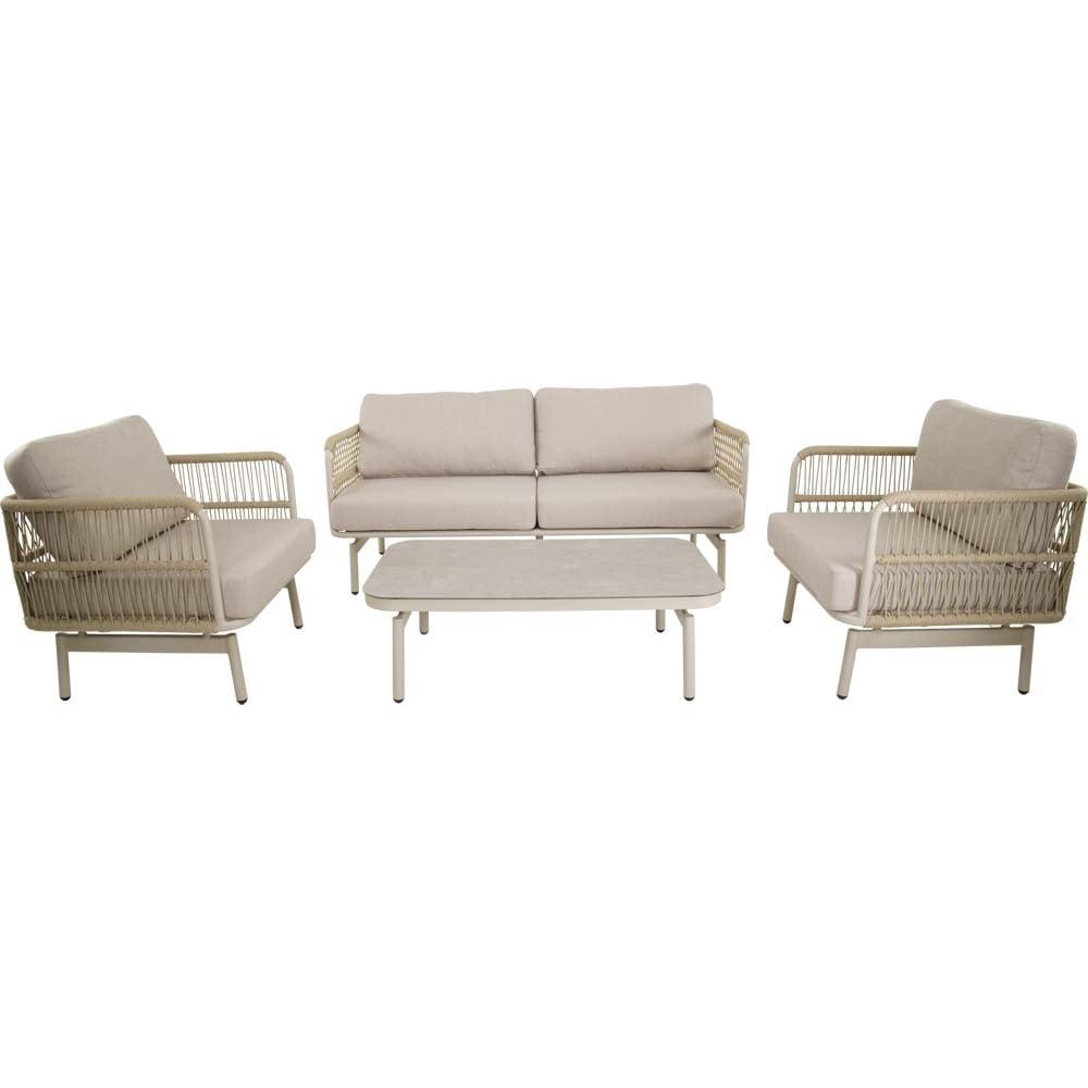 Loungeset Akiro 75 x 66 x 179 cm Aluminium Olefin-Stoff Seil Glas Beige