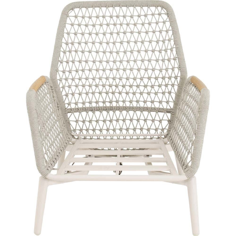 Erleben Sie Entspannung in ihrer schönsten Form mit diesem edlen Loungestuhl, der Stil, Komfort und hochwertige Materialien perfekt vereint. Das formstarke Gestell aus Aluminium präsentiert sich in einem eleganten beigen Finish, das dem Stuhl eine moderne, zugleich warme Ausstrahlung verleiht. Die Armlehnen sind zusätzlich mit fein gearbeitetem Teakholz in natürlichem Finish versehen – ein besonderes Detail, das nicht nur optisch begeistert, sondern auch haptisch ein luxuriöses Gefühl vermittelt. Die seitlichen Arm- und Rückenflächen sind mit hochwertigem Seil in Beige bespannt, wodurch ein harmonisches, luftiges Design entsteht, das Leichtigkeit ausstrahlt und dem Stuhl seine charakteristische, moderne Linienführung verleiht. Dieses Zusammenspiel aus Metall, Holz und Seil schafft einen spannenden Materialmix, der sich mühelos in verschiedene Outdoor-Stile integrieren lässt – von mediterran bis modern-minimalistisch. Für maximalen Komfort sorgen die weich gepolsterten Sitz- und Rückenkissen aus langlebigem Olefin in einem warmen Beigeton. Olefin zeichnet sich durch seine Wetterbeständigkeit, UV-Resistenz und Pflegeleichtigkeit aus, sodass der Loungestuhl nicht nur optisch überzeugt, sondern auch im Alltag höchsten Ansprüchen gerecht wird. Mit großzügigen Maßen von ca. 89 x 91 x 76 cm (Breite x Höhe x Tiefe) bietet dieser Loungestuhl viel Platz zum Zurücklehnen und Genießen. Ob auf der Terrasse, im Garten oder auf dem Balkon – er schafft einen exklusiven Ruhepunkt, der zum Verweilen einlädt. Ein Möbelstück, das Design und Wohlfühlambiente auf höchstem Niveau vereint und jeden Außenbereich stilvoll aufwertet.