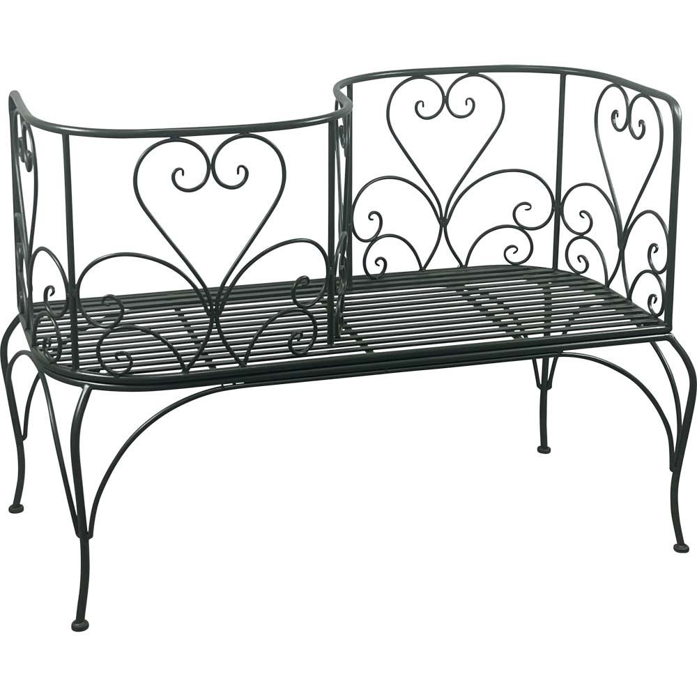 Verleihen Sie Ihrem Garten, Balkon oder Ihrer Terrasse einen ganz besonderen Charme mit dieser einzigartigen Bank aus robustem Stahl, die durch ihr kreatives Design und hochwertige Verarbeitung überzeugt. Das stabile Gestell präsentiert sich in einem eleganten grünen Finish, das Ihrem Außenbereich eine frische, natürliche Note verleiht und sich harmonisch in verschiedene Garten- und Terrassenstile einfügt. Die Bank ist so konzipiert, dass die Sitzflächen auf gegenüberliegenden Seiten angeordnet sind – Sie sitzen also einander „falschherum“. Dieses ungewöhnliche und zugleich spielerische Design fördert Interaktion, Kommunikation und sorgt für einen besonderen Blickfang in Ihrem Außenbereich. Es ist ideal für gemütliche Gespräche oder entspannte Momente im Freien, bei denen Sie sich auf neue Weise begegnen können. Besonders dekorativ sind die Rücken- und Armlehnen, die in einem liebevollen Herzdesign gestaltet sind. Dieses filigrane Detail verleiht der Bank eine romantische, charmante Optik und macht sie zu einem echten Highlight in Ihrem Garten oder auf Ihrer Terrasse. Die sorgfältige Verarbeitung von Stahl und die harmonische Formensprache verbinden Funktionalität mit ästhetischem Reiz. Mit den Maßen von ca. 50 x 92 x 122 cm (Breite x Höhe x Tiefe) bietet die Bank ausreichend Platz für zwei Personen und ist dennoch kompakt genug, um flexibel auf Ihrer Terrasse, Ihrem Balkon oder in Ihrem Garten platziert zu werden. Sie fügt sich perfekt in bestehende Outdoor-Möbelarrangements ein und sorgt für eine einladende, individuelle Sitzgelegenheit. Diese Bank vereint Kreativität, Stabilität und Design in einem außergewöhnlichen Möbelstück. Sie ist nicht nur ein praktisches Sitzmöbel, sondern auch ein stilvolles Statement, das Ihrem Außenbereich Persönlichkeit, Charme und eine verspielte Note verleiht. Genießen Sie entspannte Momente im Freien auf eine ganz neue, besondere Art.