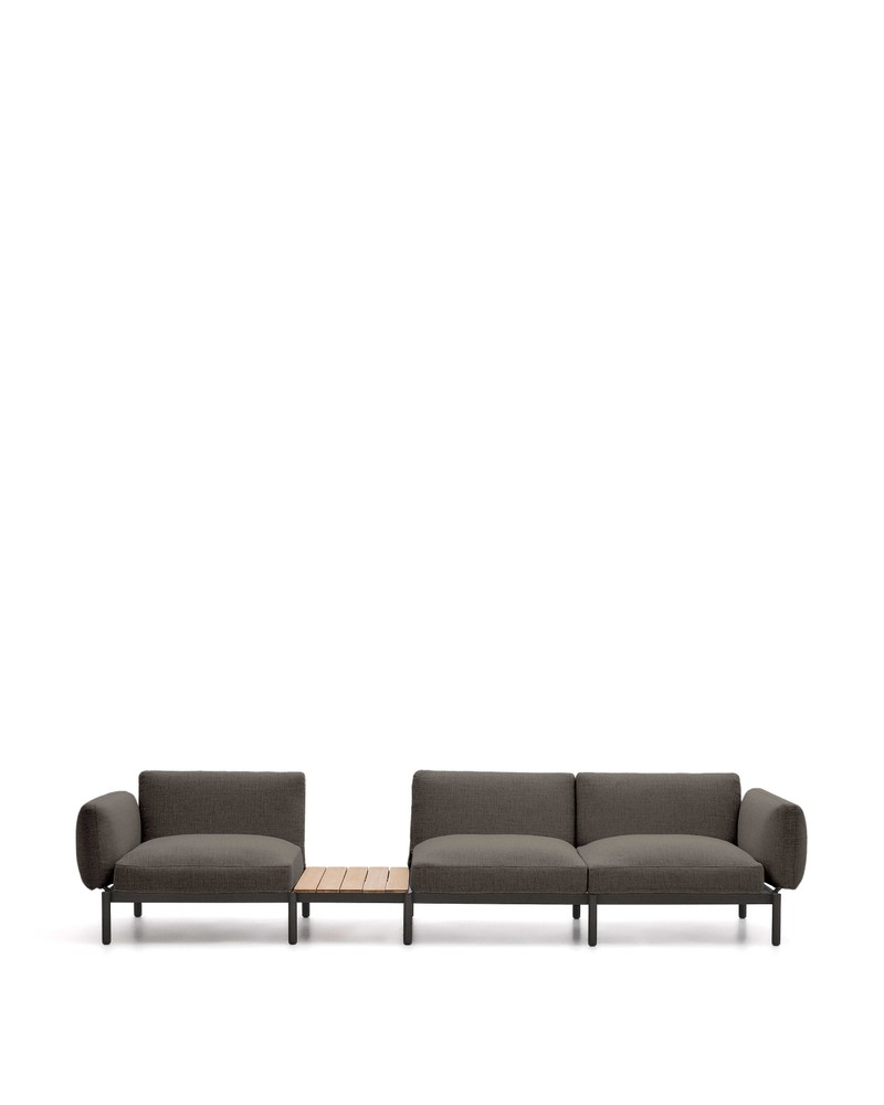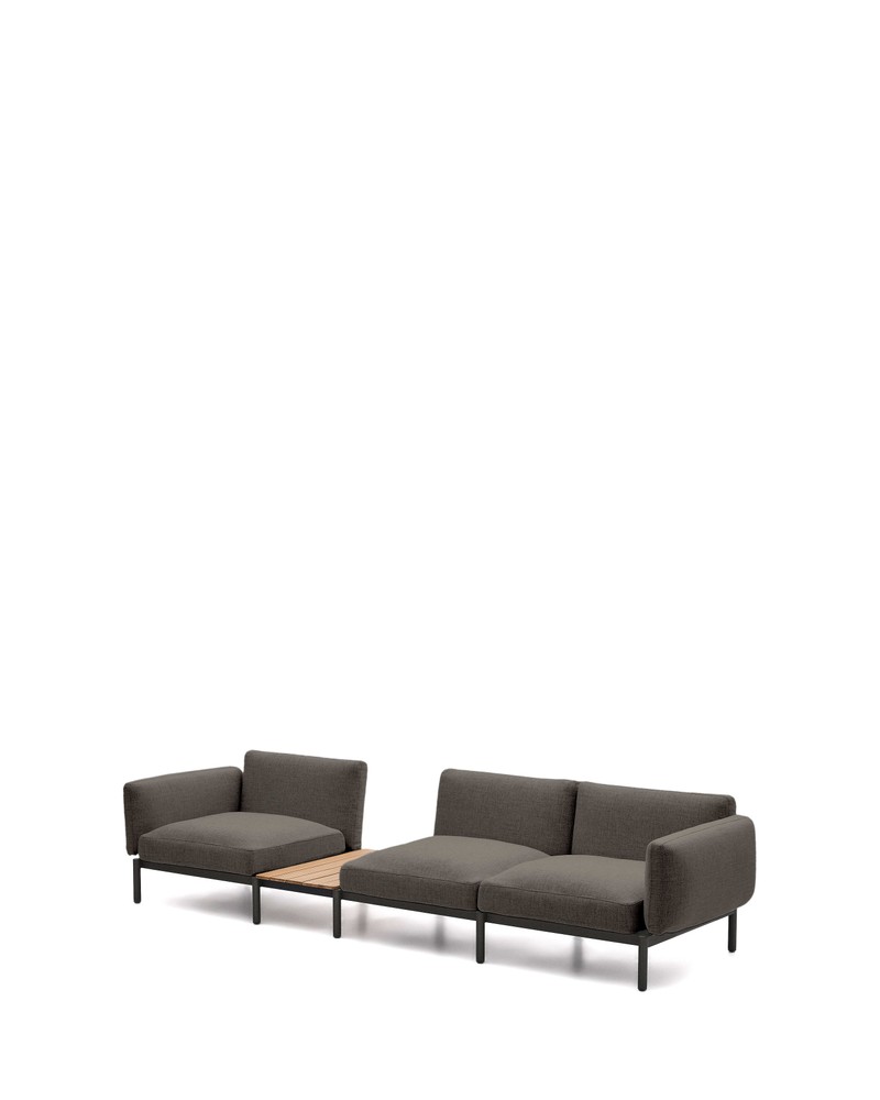 Modulares 3-Sitzer-Outdoor-Sofa Sorells 113 x 341 x 73 cm Aluminium Teak Grau