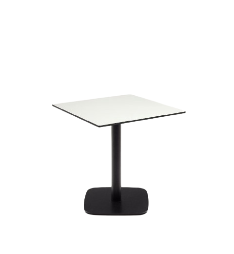 Robust und standfest. Die Tischplatte ist aus einer 12 mm starken, doppelseitigen Kompakt- HPL- Tischplatte, die schmutzabweisend, stoß- und abriebfest, temperaturbeständig und antibakteriell ist. Die Tischbeine sind aus Eisen mit mattschwarzer Sprühlackierung. Aufgrund der Materialien überzeugt der Tisch mit Langlebigkeit. Der Tisch ist sehr pflegeleicht, da er bei Bedarf einfach mit einem feuchten Tuch und mildem Reinigungsmittel gereinigt werden kann. Dieser Gartentisch verleiht Ihrem Außenbereich eine elegante Note. Der Tisch ist ideal, um bis zu vier Personen zusammenzubringen. Die Pulverbeschichtung schützt das Material vor Witterungseinflüssen.