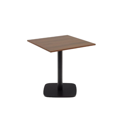 Robust und standfest.  Aufgrund der Materialien überzeugt der Tisch mit Langlebigkeit. Die nussbaumoptische Tischplatte ist aus einer 19 mm starken Melaminplatte. In Kombination mit den Tischbeinen, die aus Eisen mit mattschwarzer Sprühlackierung sind, bringen sie einen natürlichen Look in Ihren Außenbereich. Der Tisch ist sehr pflegeleicht, da er bei Bedarf einfach mit einem feuchten Tuch und mildem Reinigungsmittel gereinigt werden kann. Dieser Gartentisch verleiht Ihrem Außenbereich eine elegante Note. Zudem bietet der Tisch Platz für bis zu 4 Personen. Die Pulverbeschichtung schützt das Material vor Witterungseinflüssen.