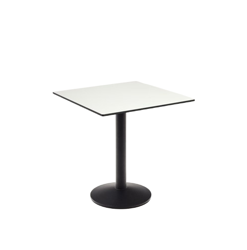 Robust und standfest. Die Tischplatte ist aus einer 12 mm starken, doppelseitigen Kompakt- HPL- Tischplatte, die schmutzabweisend, stoß- und abriebfest, temperaturbeständig und antibakteriell ist. Der runde Standfuß ist aus Eisen mit mattschwarzer Sprühlackierung. Aufgrund der Materialien überzeugt der Tisch mit Langlebigkeit. Der Tisch ist sehr pflegeleicht, da er bei Bedarf einfach mit einem feuchten Tuch und mildem Reinigungsmittel gereinigt werden kann. Zudem passt sich der Tisch aufgrund der Farbkombination jeder Stilrichtung an und bietet Platz für bis zu vier Personen.
