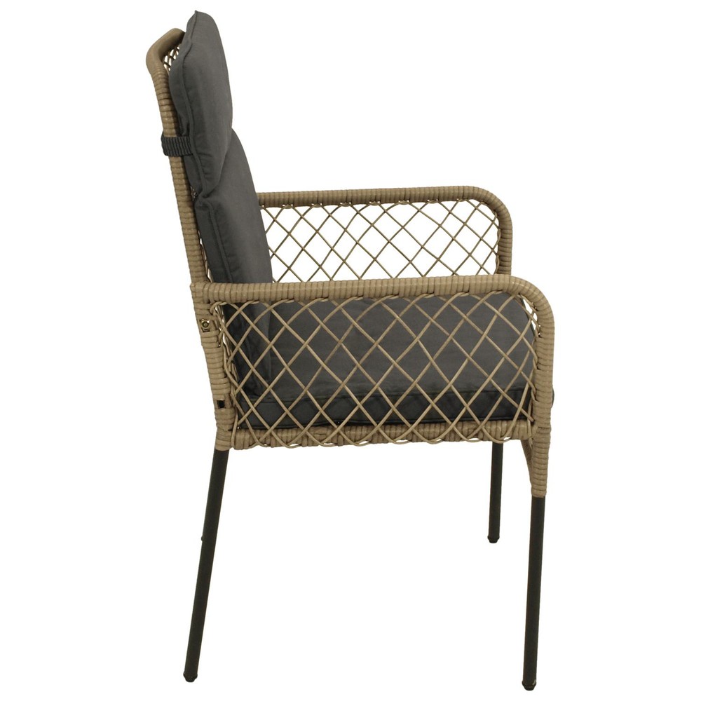 Dieser hochwertige Sessel mit Geflecht verbindet modernes Design mit Komfort und langlebigen Materialien und wird zum stilvollen Mittelpunkt Ihres Außenbereichs. Das Gestell aus Metall in elegantem Anthrazit sorgt für stabile, leichte und wetterfeste Robustheit. Das Metall ist widerstandsfähig gegenüber Feuchtigkeit und verleiht dem Sessel gleichzeitig eine elegante, hochwertige Ausstrahlung. Dieser Gartensessel vereint hochwertige Materialien, ergonomischen Sitzkomfort und elegantes Design in einem Möbelstück. Er ist die perfekte Wahl für alle, die Wert auf stilvolle, langlebige und komfortable Gartenmöbel legen und ihren Außenbereich mit einem rustikalen Highlight bereichern möchten.