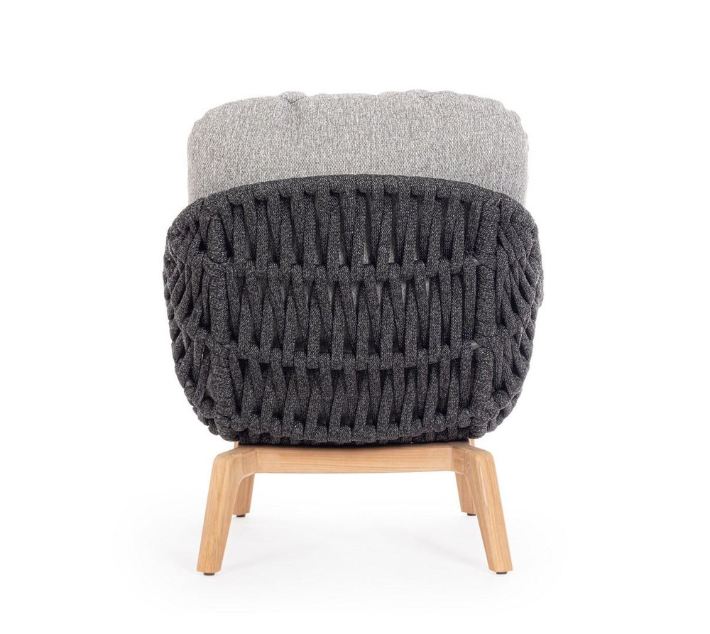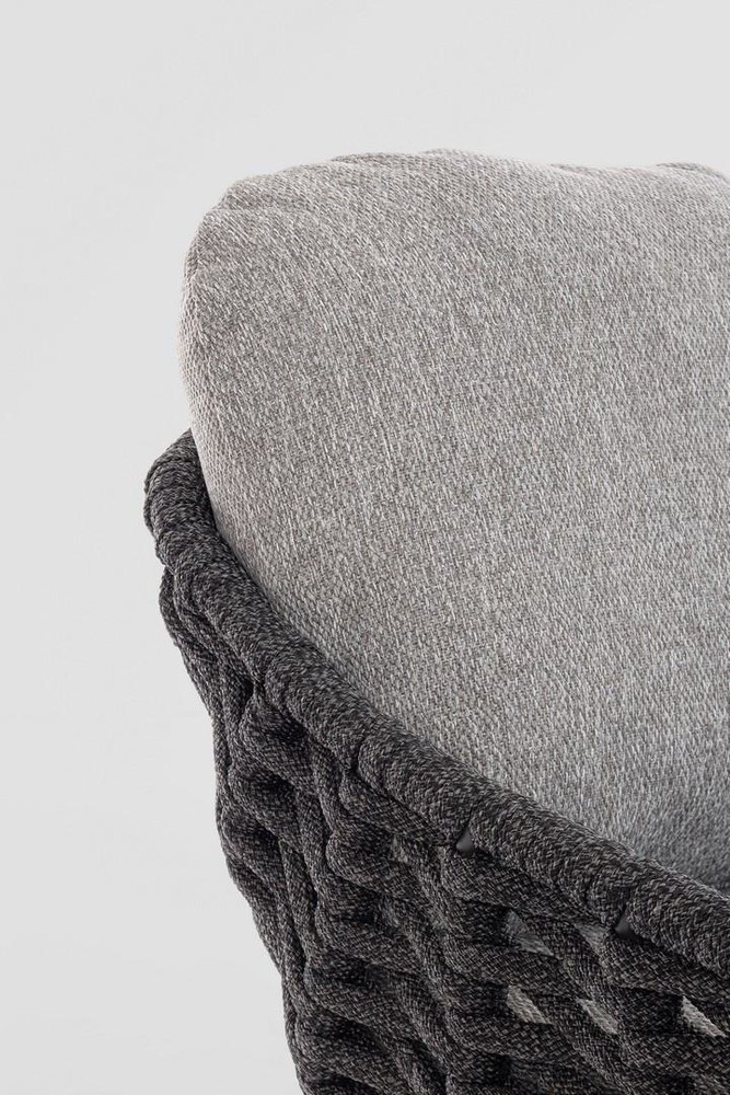 Modern und wunderschön. Bei diesem Sessel steht die Langlebigkeit ganz klar im Vordergrund. Die elegante Struktur aus pulverbeschichtetem Aluminium sorgt nicht nur für eine moderne, matte Optik, sondern auch für eine hohe Stabilität und Korrosionsbeständigkeit. Das filigrane Geflecht aus Olefin-Seil umschließt die Seitenteile und Rückenlehne, ein raffiniertes Detail, das Leichtigkeit und handwerkliche Präzision ausstrahlt. Die großzügigen Sitz- und Rückenkissen sind mit einem wasserabweisenden Olefin-Gewebe bezogen, das speziell für den Außenbereich entwickelt wurde.