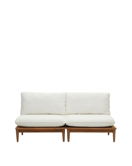 Die Kombination mit den weißen Kissen und dem braunen Teakholz ist perfekt für einen stilvollen Genuss in ihrem Zuhause und Außenbereich. Aufgrund des Teakholzes ist das Sofa im Freien langlebig. Das Modul passt sich Ihnen und Ihrer Umgebung an. Der Rahmen lässt sich mit einem Tuch leicht reinigen. Die Kissen bieten einen bequemen Sitzkomfort.