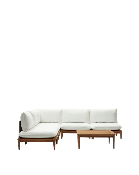 Das Loungeset besteht aus einem Ecksessel, vier Sesseln und einem Couchtisch. Das Loungeset besteht aus hochwertigem Teakholz, das für seine Langlebigkeit und natürliche Schönheit bekannt ist. Die Polster bieten einen sehr hohen Sitzkomfort. Das moderne Design schafft eine stilvolle Outdoor-Lounge. Die Gartenmöbel sehen nicht nur stilvoll aus, sondern sind auch sehr langlebig.