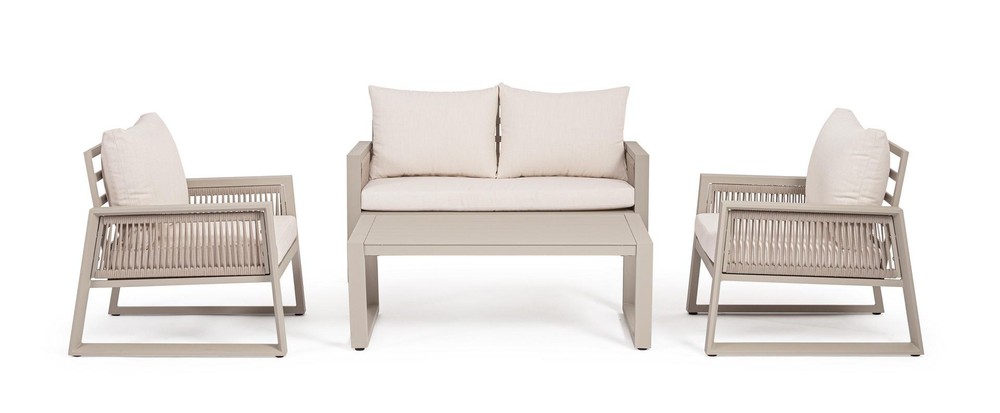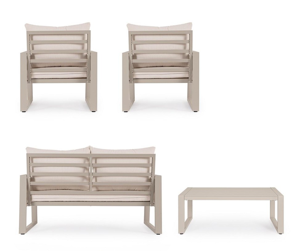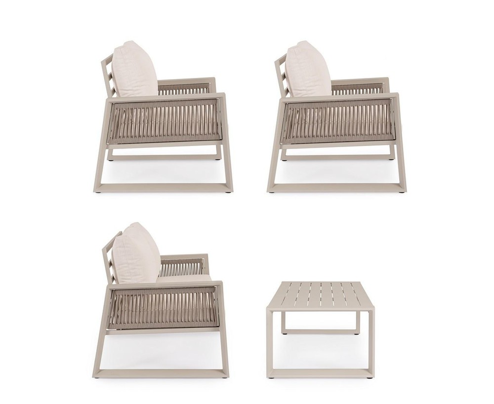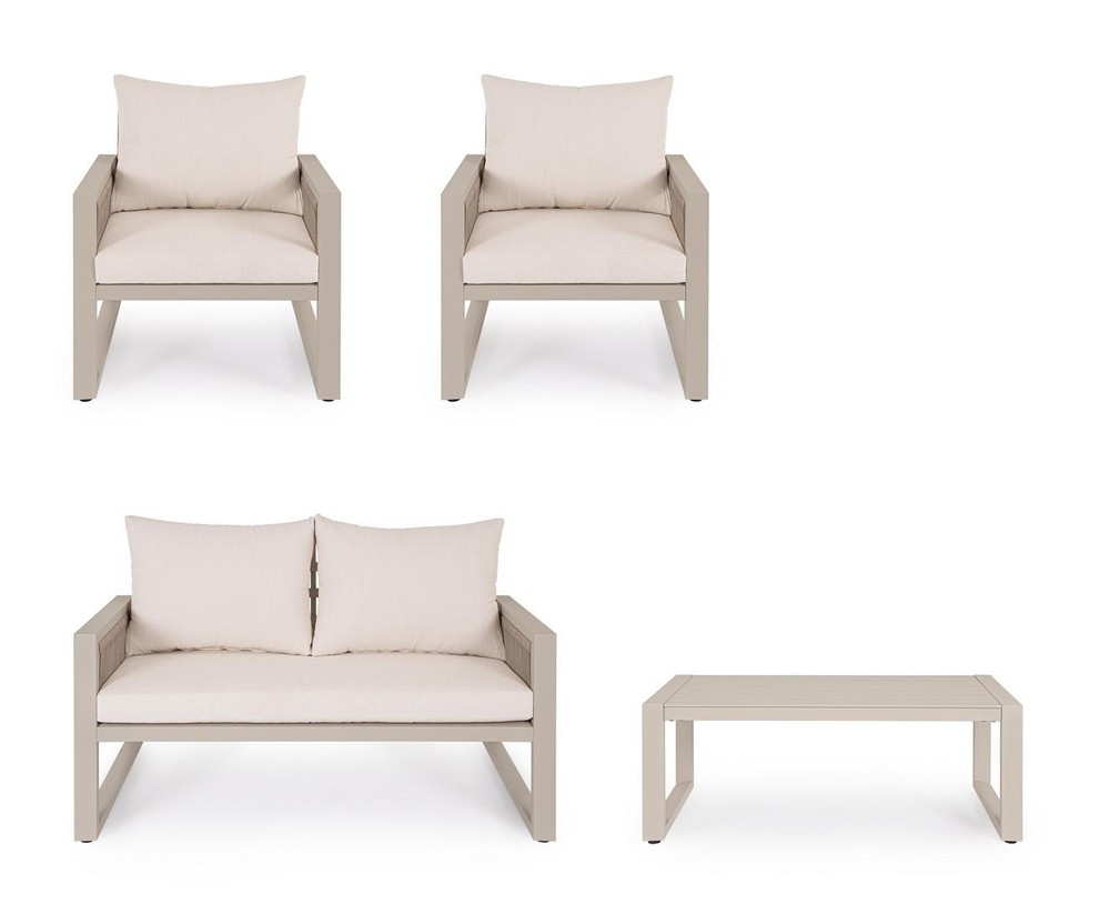 Sitzgruppe Captiva 1 Sofa 2 Sessel 1 Tisch Aluminium Polyester Beige