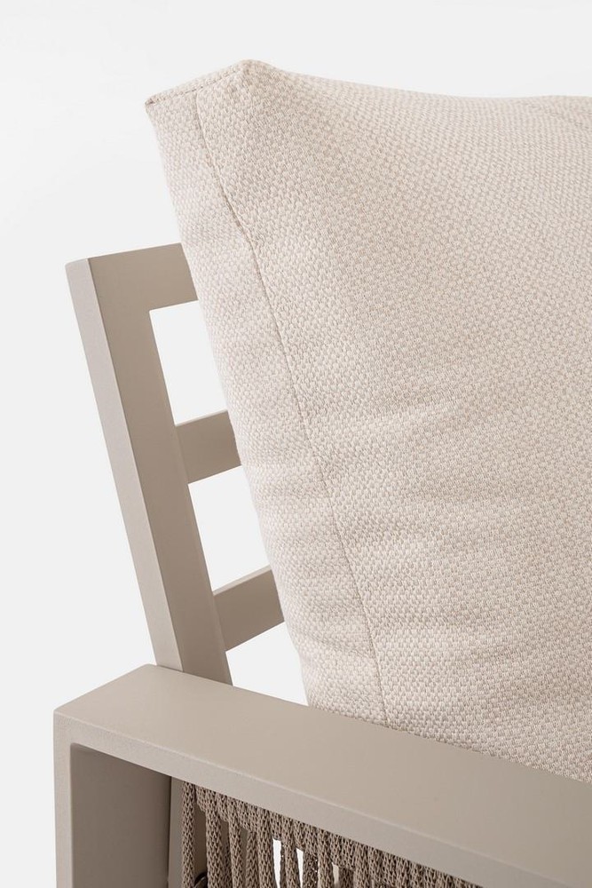 Diese elegante Lounge-Sitzgruppe setzt Design-Akzente in Ihrem Außenbereich und lädt zum Verweilen ein. Diese stilvolle Gartenlounge besteht aus zwei komfortablen Sesseln, einem einladenden Sofa und einem passenden Tisch, perfekt für entspannte Stunden im Freien. Das Set verbindet modernes Design mit wetterfesten Materialien und bietet ausreichend Platz für gemütliche Gespräche oder entspannte Lesestunden. Die großzügig gepolsterten Sitz- und Rückenkissen machen diese Outdoor-Lounge besonders gemütlich. Sie sind mit einem hochwertigen Polyester-Gewebe bezogen, das speziell für den Einsatz unter freiem Himmel entwickelt wurde. Dieser Stoff ist wasserabweisend, schmutzabweisend und farbecht, so dass Regentropfen einfach abperlen und die Polster schnell wieder trocken sind. Ideal für den sommerlichen Abend – hier trifft modernes Design auf gemütliche Atmosphäre. Die beige Oberfläche verleiht der Garnitur ein edles, zurückhaltendes Aussehen und schützt den Rahmen dauerhaft vor Korrosion.