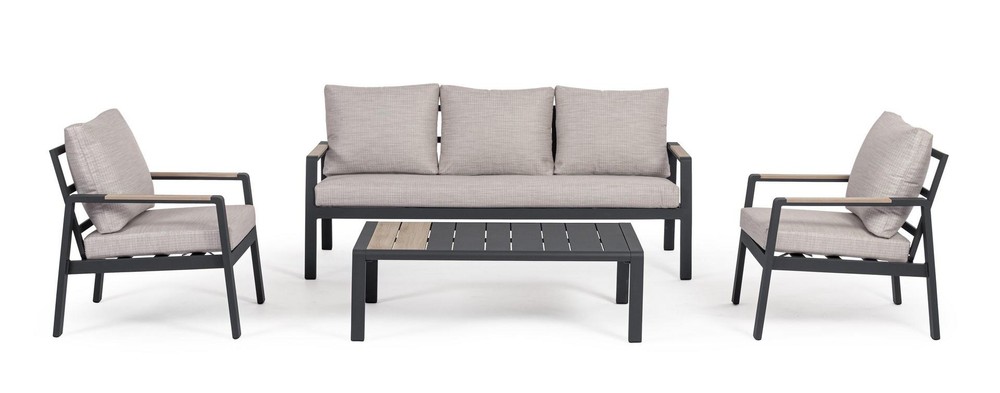 Sitzgruppe Elna 1 Sofa 2 Sessel 1 Tisch Aluminium Polyester Anthrazit