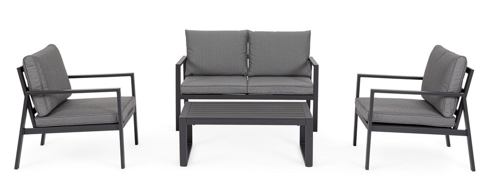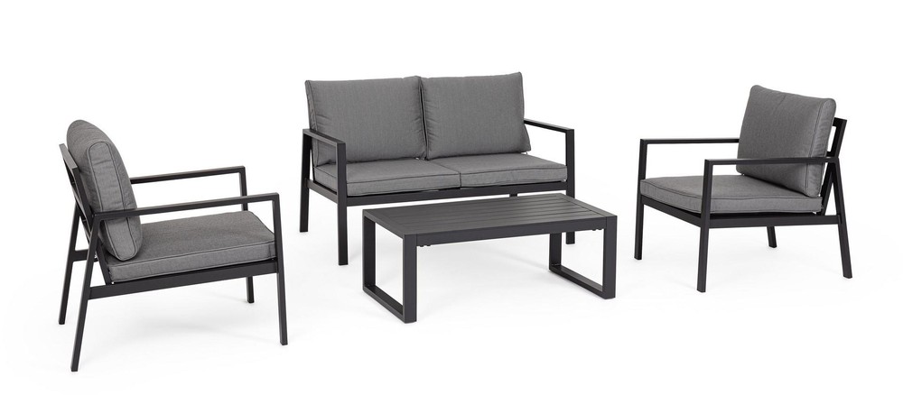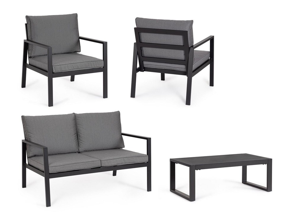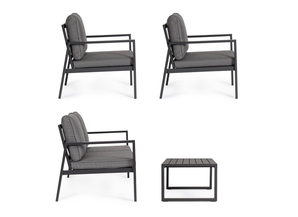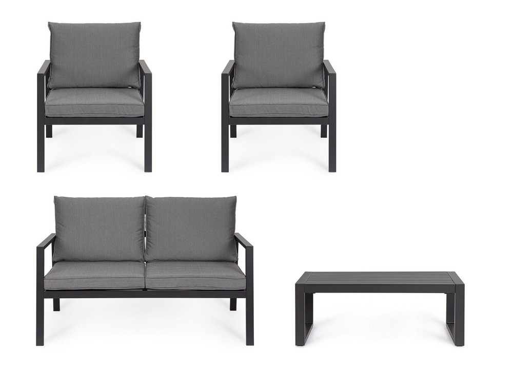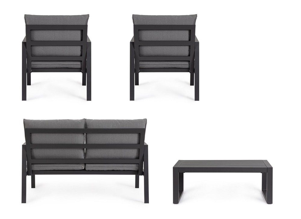 Sitzgruppe Hilde 1 Sofa 2 Sessel 1 Tisch Aluminium Polyester Anthrazit