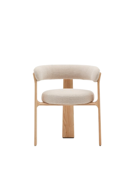 Stuhl Granite 3 Beine beige Chenille massives Eschenhol
