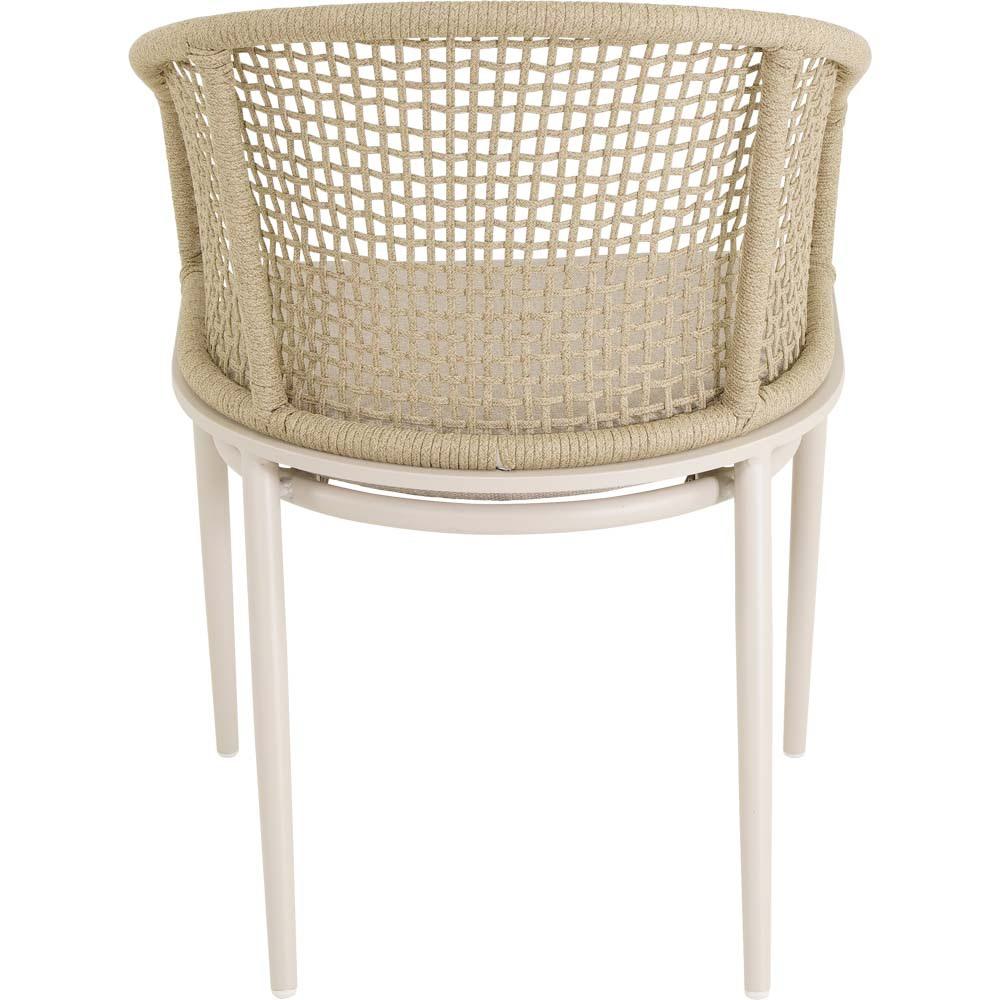 Die Bespannung aus Ø 4 mm Seil in Grün verleiht dem Stuhl eine zeitgemäße Leichtigkeit und unterstützt ein komfortables Sitzgefühl. Ergänzt wird der Sitzkomfort durch die Olefin-Polsterung mit 270 g/m², die strapazierfähig und pflegeleicht ist. Mit einer maximalen Traglast von 120 kg ist der Stuhl robust und ideal für den täglichen Gebrauch geeignet.