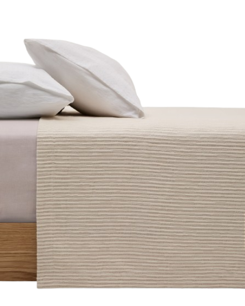 Die Tagesdecke Vindi ist ein stilvolles und praktisches Accessoire für jedes Schlafzimmer. Sie besteht zu 100% aus Baumwolle und kommt in einem eleganten Ecru-Ton, der durch feine Fantasiestreifen aufgelockert wird und der Decke einen modernen sowie zugleich rustikalen Charme verleiht.