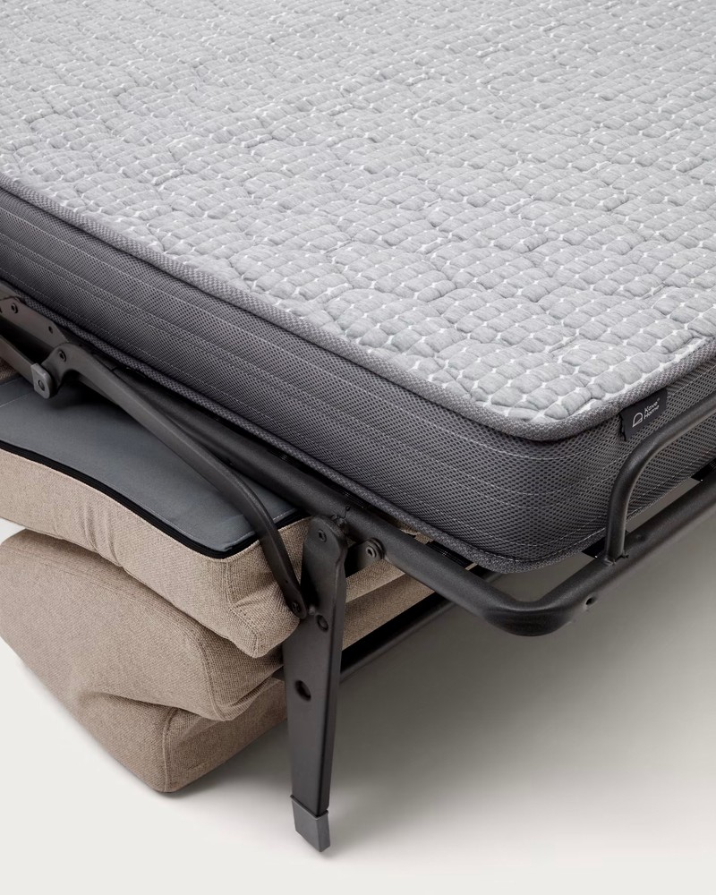 Dieses stilvolle Sofa ist die perfekte Ergänzung für Ihre Wohnzimmer oder Gästezimmer. Es bietet Sitzplätze für drei Personen und eine viskoelastische Matratze. Dank der wendbaren Matratze bietet das Sofa einen sehr hohen Komfort. Genießen Sie entspannte Stunden auf diesem Sofa, welches einfach zu einem Bett umgewandelt werden kann. Dieses Schlafsofa in einem ansprechenden Beige vereint Funktionalität mit Stil.