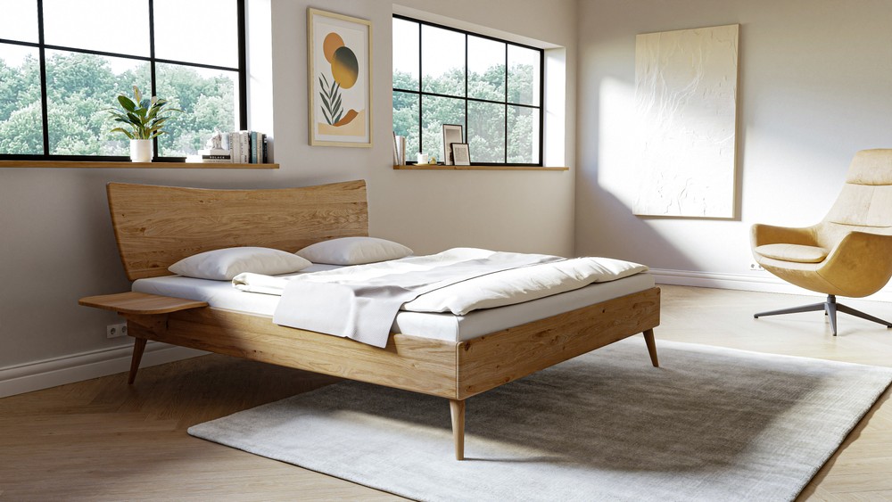 Bett aus Eichenholz - Schlichtes Design, massives Holz
