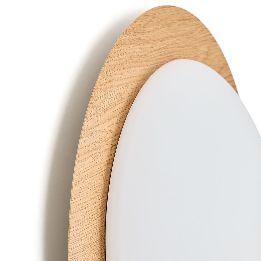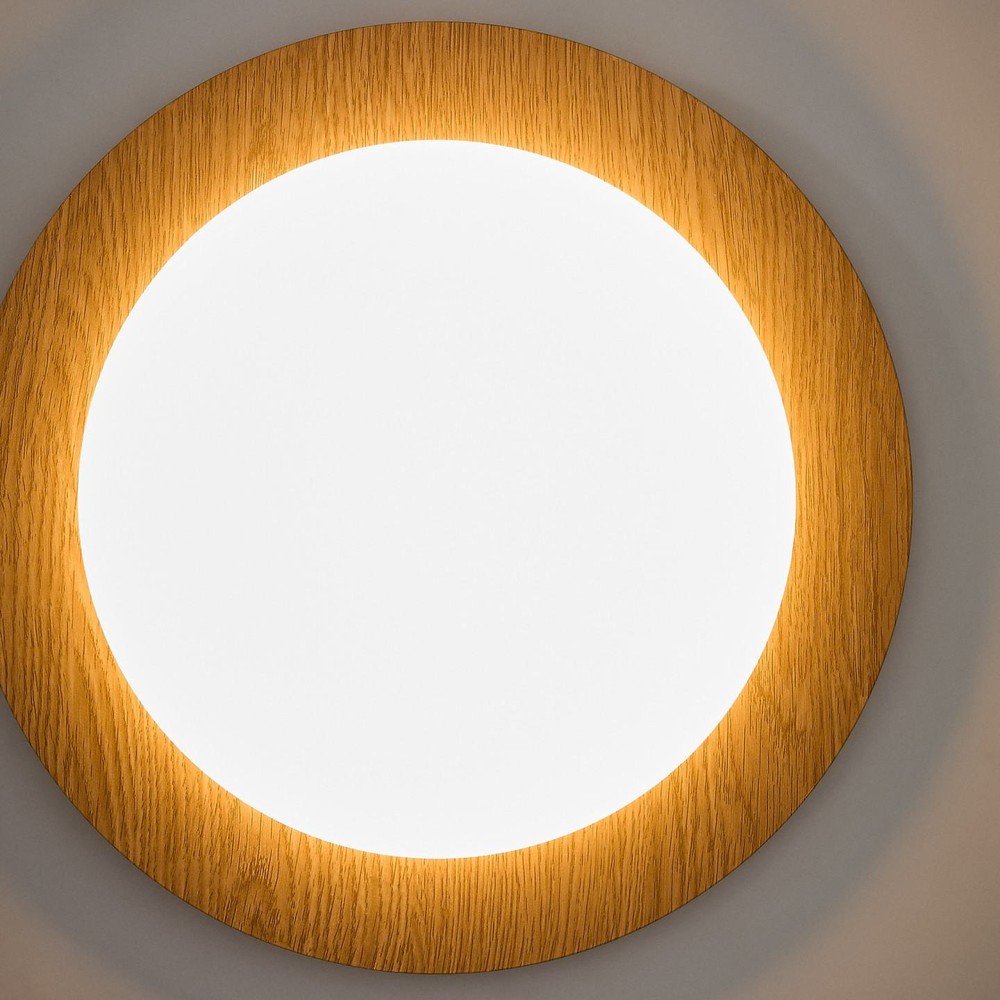 Die Deckenleuchte steht für zeitlose Zurückhaltung und eine harmonische Lichtstimmung. Ihr Design vereint puristisches, mattiertes Glas mit einem schlichten Sockel aus Stahl in warmer Holzoptik und schafft so eine ausgewogene Verbindung aus moderner Klarheit und natürlicher Eleganz. Die Deckenleuchte fügt sich unaufdringlich in den Raum ein und verleiht ihm eine ruhige, stilvolle Atmosphäre.