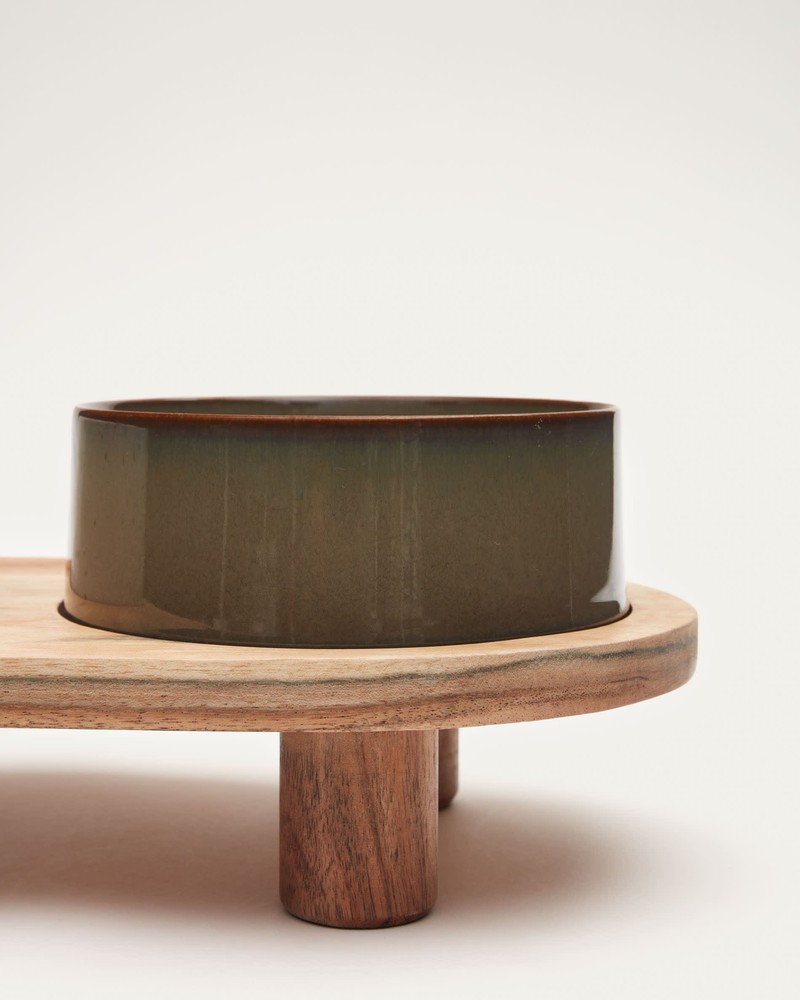 2er Set Futternäpfe Dumbi 34,5 x 11,5 x 18 cm Keramik Akazie Mehrfarbig Braun