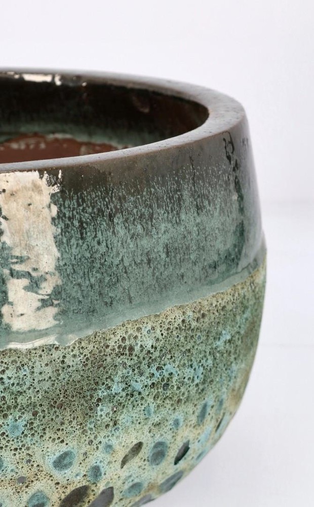 Dieses bezaubernde Set aus zwei Vasen aus emailliertem Terrakotta vereint mediterranen Charme mit handwerklicher Präzision und ist die perfekte Dekoration für Ihren Außenbereich. Jede Vase ist in einem leuchtenden Türkiston gehalten, der Frische und Lebendigkeit ausstrahlt und Ihren Garten, Ihre Terrasse oder Ihren Balkon stilvoll bereichert. Die glatte, glänzende Oberfläche unterstreicht die geschwungenen Formen und sorgt für eine elegante Optik, die sowohl harmonisch als auch auffällig wirkt. Da es sich um handgefertigte Produkte handelt, sind kleine Abweichungen in Farbe, Tonalität oder Form keine Fehler, sondern charakteristische Merkmale, die jede Vase zu einem einzigartigen Unikat machen. Jede Nuance, jeder Farbunterschied und jede kleine Unvollkommenheit erzählt von traditioneller Handwerkskunst und verleiht dem Ensemble eine individuelle Persönlichkeit. Die Vasen verfügen über ein praktisches Loch im Boden, das für eine ideale Drainage sorgt. So können sie problemlos als Pflanzgefäße im Außenbereich verwendet werden, ohne dass sich überschüssiges Wasser staut. Gleichzeitig bleibt die Stabilität erhalten, sodass die Vasen sicher stehen und langlebig genutzt werden können. Das Set umfasst zwei unterschiedlich große Vasen, die harmonisch miteinander kombiniert werden können. Die große Vase misst ca. 36 x 22 x 36 cm (Breite x Höhe x Tiefe), während die kleinere Vase ca. 29 x 17 x 29 cm misst. Durch diese Größenvielfalt lassen sich attraktive Arrangements gestalten, sei es gruppiert als Blickfang oder einzeln als stilvolle Dekoration. Ob als dekorative Pflanzgefäße, als Solitär im Garten oder als eleganter Akzent auf der Terrasse – dieses handgefertigte Vasen-Set aus emailliertem Terrakotta bringt Farbe, Individualität und mediterranen Flair in jeden Außenbereich.