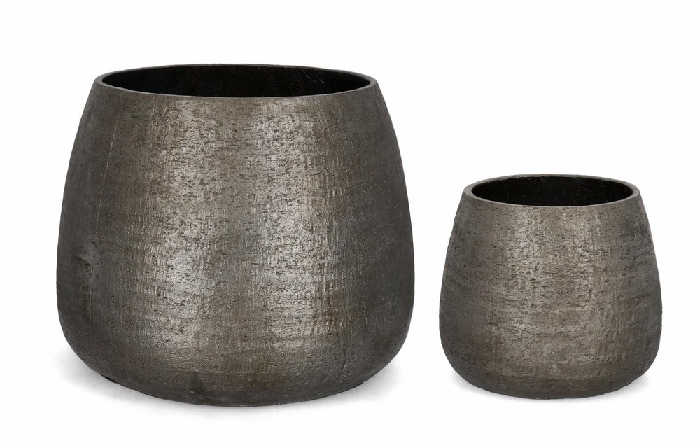 Setzen Sie eindrucksvolle Akzente im Außenbereich – mit diesem Set aus zwei handgefertigten Vasen aus Glas- und Tonfaser in rustikalem Grau. Jede Vase ist ein einzigartiges Unikat, dessen natürliche Struktur und Oberflächenoptik durch die sorgfältige Handarbeit ihren unverwechselbaren Charakter erhalten. Die Kombination aus robustem Tonfaser-Material und elegantem Glas verleiht den Vasen eine besondere Tiefe und Natürlichkeit, die in jedem Garten, auf der Terrasse oder auf dem Balkon sofort ins Auge fällt. Das Set umfasst zwei unterschiedlich große Vasen, die sich perfekt als harmonisches Ensemble ergänzen. Die Vasen verfügen über ein Loch am Boden, das eine einfache Entwässerung ermöglicht und sie ideal für den Außenbereich macht. So können Sie Blumen, Pflanzen oder dekorative Arrangements stilvoll präsentieren, ohne dass Wasseransammlungen die Pflanzengesundheit beeinträchtigen. Dank der handgefertigten Verarbeitung und der natürlichen Farbgebung in rustikalem Grau strahlt jede Vase eine besondere Authentizität aus. Die unterschiedlichen Größen erzeugen zudem eine spannende Dynamik und lassen sich flexibel im Außenbereich arrangieren – ob als einzelnes Statement, als Duo neben der Terrasse oder als dekoratives Highlight am Hauseingang. Dieses Vasen-Set verbindet rustikalen Charme, handwerkliche Qualität und natürliche Eleganz zu einem langlebigen, stilvollen Ensemble, das Ihrem Außenbereich sofort Charakter und Ausdruck verleiht.