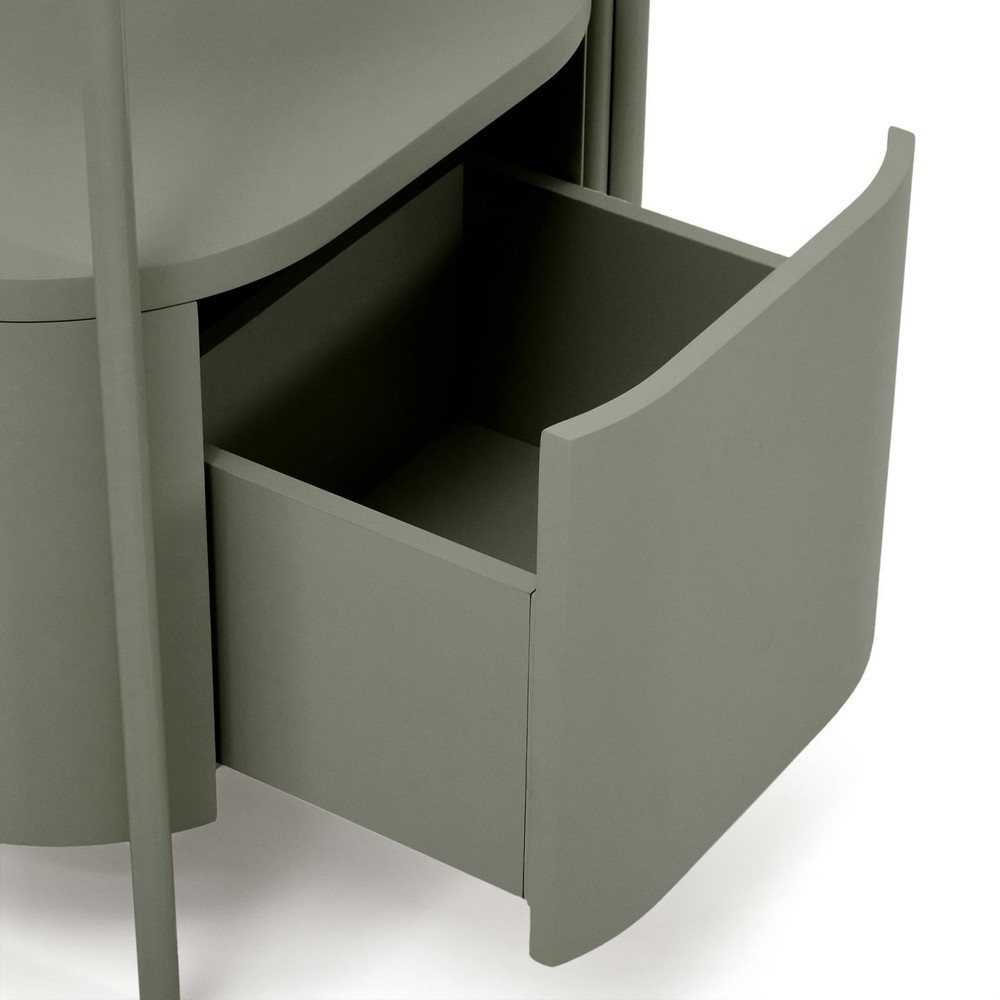Dieser Badezimmerschrank ist ein Meisterwerk moderner Zurückhaltung und durchdachter Funktionalität. Das Möbelstück vereint organische Linien mit klar definierten Volumen und schafft so eine Atmosphäre, die Ruhe, Ordnung und Wohlbefinden ausstrahlt. Das Design verzichtet bewusst auf harte Kanten und scharfe Übergänge. Stattdessen fließen weiche Rundungen harmonisch ineinander und machen den Schrank nicht nur optisch angenehm, sondern auch besonders komfortabel im täglichen Gebrauch. Das filigrane Stahlgestell verleiht dem Möbel Stabilität und eine moderne Leichtigkeit, während der lackierte MDF-Korpus mit seiner wasserabweisenden Oberfläche speziell für den Einsatz im Badezimmer entwickelt wurde.