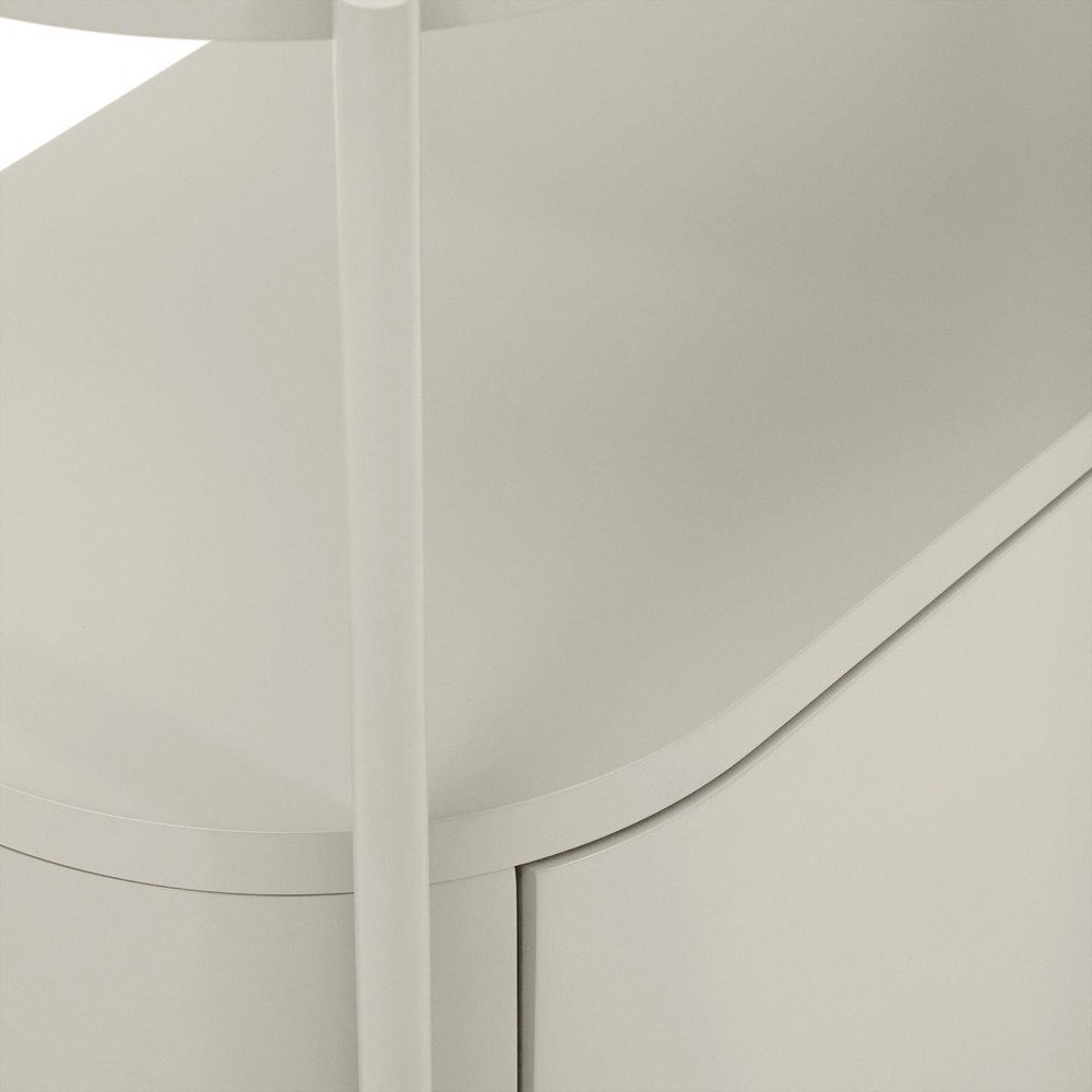 Dieser Badezimmerschrank ist ein Meisterwerk moderner Zurückhaltung und durchdachter Funktionalität. Das Möbelstück vereint organische Linien mit klar definierten Volumen und schafft so eine Atmosphäre, die Ruhe, Ordnung und Wohlbefinden ausstrahlt. Das Design verzichtet bewusst auf harte Kanten und scharfe Übergänge.