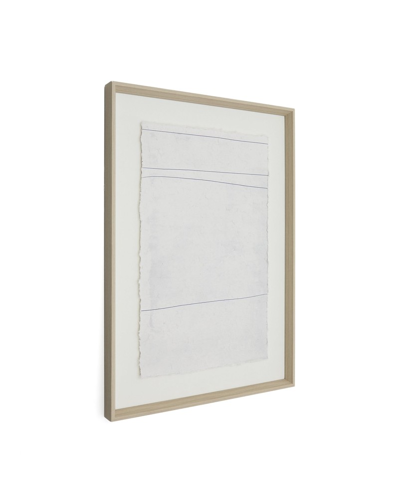 Dieses stilvolle Bild besticht durch seine schlichte, klare Linienführung, die in reizvollem Kontrast zur reichen Textur des Drucks steht und so ein visuell ausgewogenes sowie elegantes Kunstwerk schafft. Gedruckt auf hochwertigem Recyclingpapier in Weiß, verbindet es ästhetische Raffinesse mit nachhaltiger Produktion – ein Ausdruck von zeitgemäßem Designbewusstsein, das Stil und Umweltbewusstsein harmonisch vereint. Das Bild ist mit einer praktischen D-Ring-Aufhängung ausgestattet, die Ihnen die flexible Befestigung ermöglicht. Sie können je nach Art Ihrer Wand die passenden Dübel einsetzen, sodass das Werk sicher und stabil hängt. Die reduzierte, moderne Gestaltung macht das Bild zu einem vielseitigen Dekorationsstück, das sowohl in Wohnräumen als auch in Büro- oder Arbeitsbereichen für elegante Akzente sorgt. Mit den Maßen von ca. 50 x 70 x 3,8 cm (Breite x Höhe x Tiefe) ist das Bild ideal proportioniert, um als zentrales Highlight an einer Wand zu wirken oder harmonisch in eine Galerieanordnung eingebunden zu werden. Ein Kunstwerk, das Schlichtheit, Eleganz und Nachhaltigkeit auf beeindruckende Weise vereint und jedem Raum einen stilvollen Charakter verleiht.