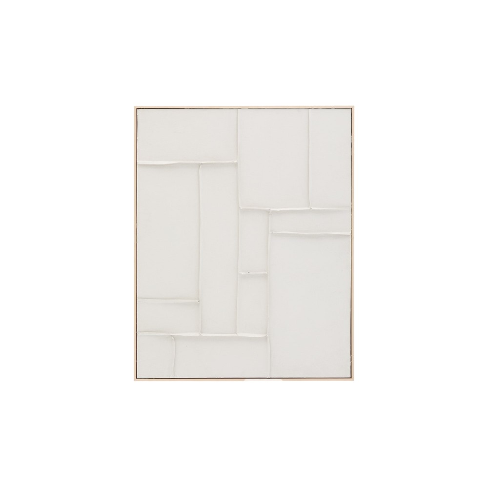 Entdecken Sie dieses faszinierendes Kunstwerk, das durch seine abstrakte Eleganz und seine einzigartige Textur besticht. Dieses handgefertigte Leinwandstück vereint harmonisch geometrische Formen und reliefartige Strukturen in einem dezenten, strahlenden Weiß, das jeden Raum mit zeitloser Raffinesse erfüllt. Die geschickte Kombination aus minimalistischer Gestaltung und subtilen räumlichen Akzenten macht dieses Werk zu einem Blickfang, der sowohl Ruhe als auch kreative Inspiration ausstrahlt. Jedes Exemplar ist ein Unikat, sorgfältig von Hand gefertigt, was jedem Stück seine individuelle Note verleiht. Die Verwendung hochwertiger Materialien und die Liebe zum Detail spiegeln sich in der plastischen Oberfläche wider, die durch die Reliefs eine spannende Tiefenwirkung erzeugt. Das elegante Design erlaubt vielseitige Einsatzmöglichkeiten – ob in einem modernen Wohnzimmer, einem eleganten Büro oder einem stilvollen Flur. Das Kunstwerk wird inklusive passendem Rahmen geliefert, der die geometrischen Formen zusätzlich betont und den Gesamteindruck abrundet. Für eine flexible Platzierung ist eine praktische D-Ring-Aufhängung integriert, die es ermöglicht, das Werk sowohl senkrecht als auch waagerecht an Ihrer Wand zu präsentieren. Die Maße von etwa 100 cm in der Länge, 80 cm in der Breite und 4 cm in der Höhe machen dieses Kunstwerk zu einem imposanten Blickfang, der jedem Raum Tiefe und Charakter verleiht. Lassen Sie sich von der abstrakten Schönheit und der handwerklichen Qualität dieses exklusiven Leinwandbildes begeistern – ein zeitloses Kunstwerk, das durch seine klare Formensprache und seine hochwertige Verarbeitung begeistert.