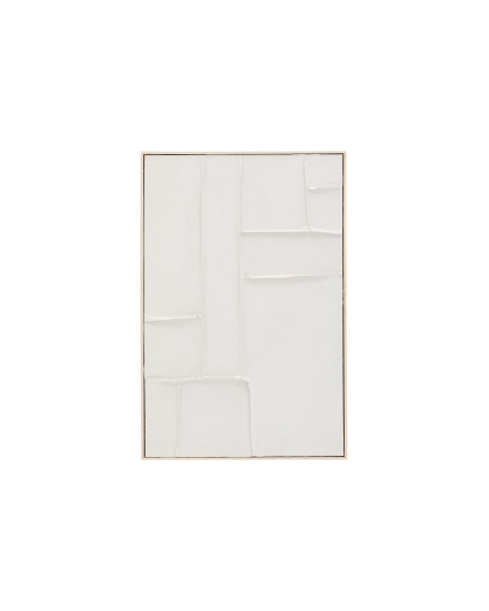 Erleben Sie die zeitlose Eleganz dieses handgefertigten Kunstwerks, das Ihrem Raum eine besondere Note verleiht. Dieses abstrakte Bild aus feinstem Leinen besticht durch seine weißen Reliefs und geometrischen Formen, die einen faszinierenden visuellen Kontrast schaffen. Jedes Stück ist ein Unikat, das mit höchster Sorgfalt und Liebe zum Detail gefertigt wurde. Der schlichte, aber stilvolle Rahmen aus Kiefernholz ergänzt das Kunstwerk perfekt und verleiht ihm eine natürliche Ausstrahlung. Dank der praktischen D-Ring-Aufhängung lässt sich das Bild mühelos sowohl senkrecht als auch waagerecht anbringen, sodass Sie es ganz nach Ihrem persönlichen Stil in Szene setzen können. Mit den Maßen von ca. 90 x 60 x 4 cm ist dieses Kunstwerk ideal für jeden Innenraum und wird zum Blickfang in Ihrem Zuhause. Bringen Sie Kunst und Design in Einklang und genießen Sie die harmonische Atmosphäre, die dieses exklusive Stück in Ihren Wohnraum zaubert.
