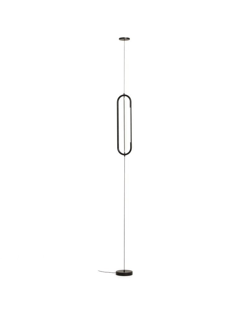 Diese außergewöhnliche Deckenlampe vereint minimalistisches Design, hochwertige Materialien und innovative Lichttechnik zu einem echten Blickfang für jeden Raum. Der Korpus aus Aluminium ist mit einer mattschwarz lackierten Oberfläche veredelt, die der Lampe eine elegante, zeitlose Ausstrahlung verleiht. Das besondere Highlight: Die Lampe wird an einem Draht befestigt, der sowohl an der Decke als auch am Boden fixiert wird. Dadurch wirkt es, als würde die Lampe schweben und erzeugt eine moderne, fast skulpturale Anmutung, die jedem Interieur eine besondere Note verleiht. Die integrierte 10-Watt-LED liefert 1120 Lumen bei einer Farbtemperatur von 2700 K und sorgt für ein warmweißes, behagliches Licht, das sowohl für stimmungsvolle Beleuchtung als auch für funktionale Lichtakzente ideal ist. Über den integrierten Dimmer lässt sich die Helligkeit flexibel anpassen – von sanfter Atmosphäre bis zu gezielter Ausleuchtung. Die Stromversorgung über Standardkabel und -stecker ermöglicht eine unkomplizierte Installation und flexible Nutzung. Mit ihrer schlanken Form, der schwarzen Metalloptik und dem einzigartigen Schwebe-Effekt ist diese Deckenlampe nicht nur funktional, sondern auch ein ästhetisches Highlight, das jedem Raum Modernität und Eleganz verleiht.