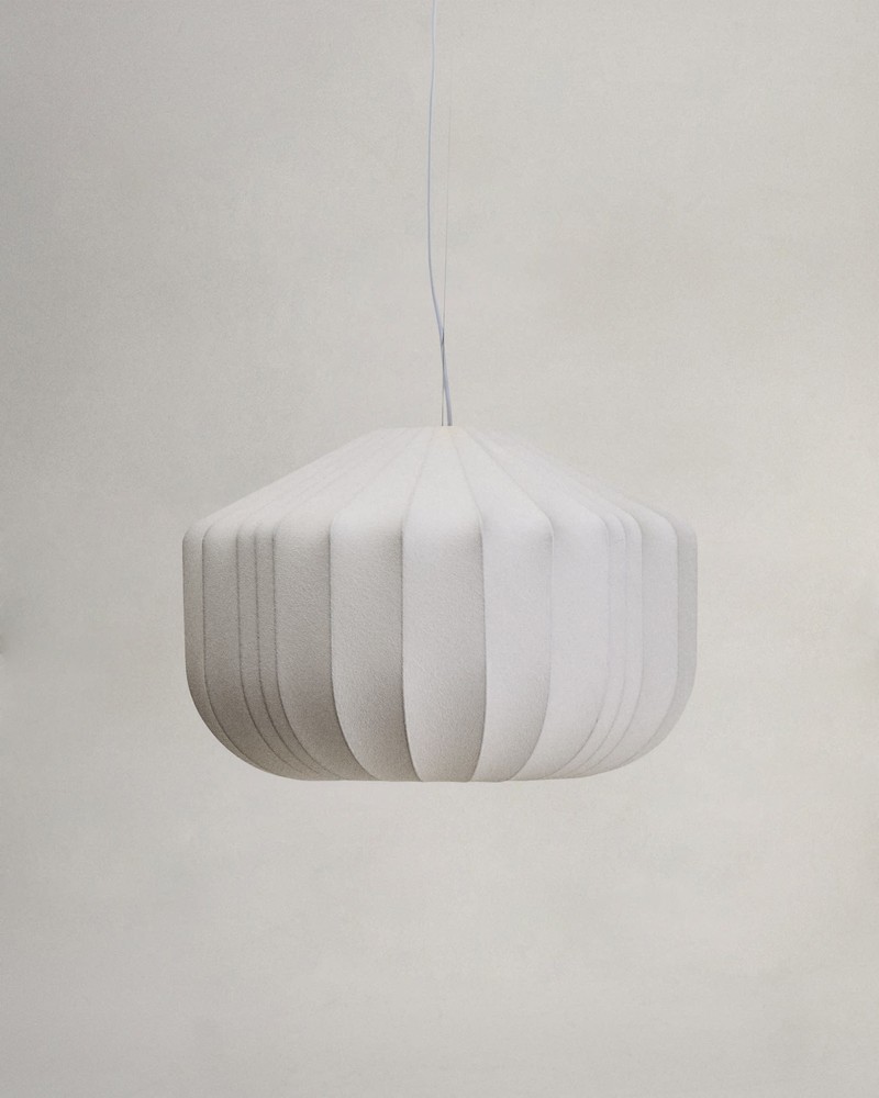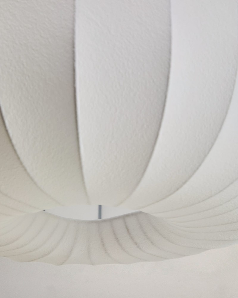Diese elegante Deckenleuchte vereint handwerkliche Raffinesse mit modernem Design und setzt in jedem Raum stilvolle Akzente. Der Lampenschirm aus weißer Seide besticht durch seine leichte, luftige Optik, die für ein sanftes, diffuses Licht sorgt und eine warme, einladende Atmosphäre schafft. Die besondere Herstelltechnik macht diese Leuchte zu einem echten Kunstwerk: Synthetikfasern werden auf rotierende Stahlstäbe gesprüht, die als stabiler Träger dienen. So entsteht eine fein strukturierte Oberfläche, die dem Schirm Tiefe und Dynamik verleiht und gleichzeitig für Robustheit sorgt. Die Kombination aus zarter Seide und minimalistischen Stahlstäben verleiht der Leuchte einen modernen, skulpturalen Charakter. Sie fügt sich sowohl in zeitgemäße Wohnräume als auch in elegante Ess- oder Schlafzimmerkonzepte ein und wird zum stilvollen Blickfang über Esstisch, Sofa oder Eingangsbereich. Das Kabel ist mit einer weichen, flexiblen Ummantelung versehen, die ein Verheddern verhindert und die Handhabung deutlich erleichtert. Mit einer Länge von 260 cm bietet es zudem ausreichend Spielraum für unterschiedliche Deckenhöhen und individuelle Platzierungen. Mit Maßen von ca. 51 x 36 x 51 cm (Breite x Höhe x Tiefe) überzeugt die Leuchte durch eine großzügige Präsenz, ohne den Raum zu dominieren. Sie kombiniert hochwertige Materialien, durchdachte Technik und ein elegantes Design zu einem funktionalen und zugleich dekorativen Highlight für Ihr Zuhause. Dieses Lichtobjekt vereint Leichtigkeit, Stil und handwerkliche Präzision – ideal für alle, die moderne Ästhetik mit einem Hauch kunstvoller Detailarbeit schätzen.