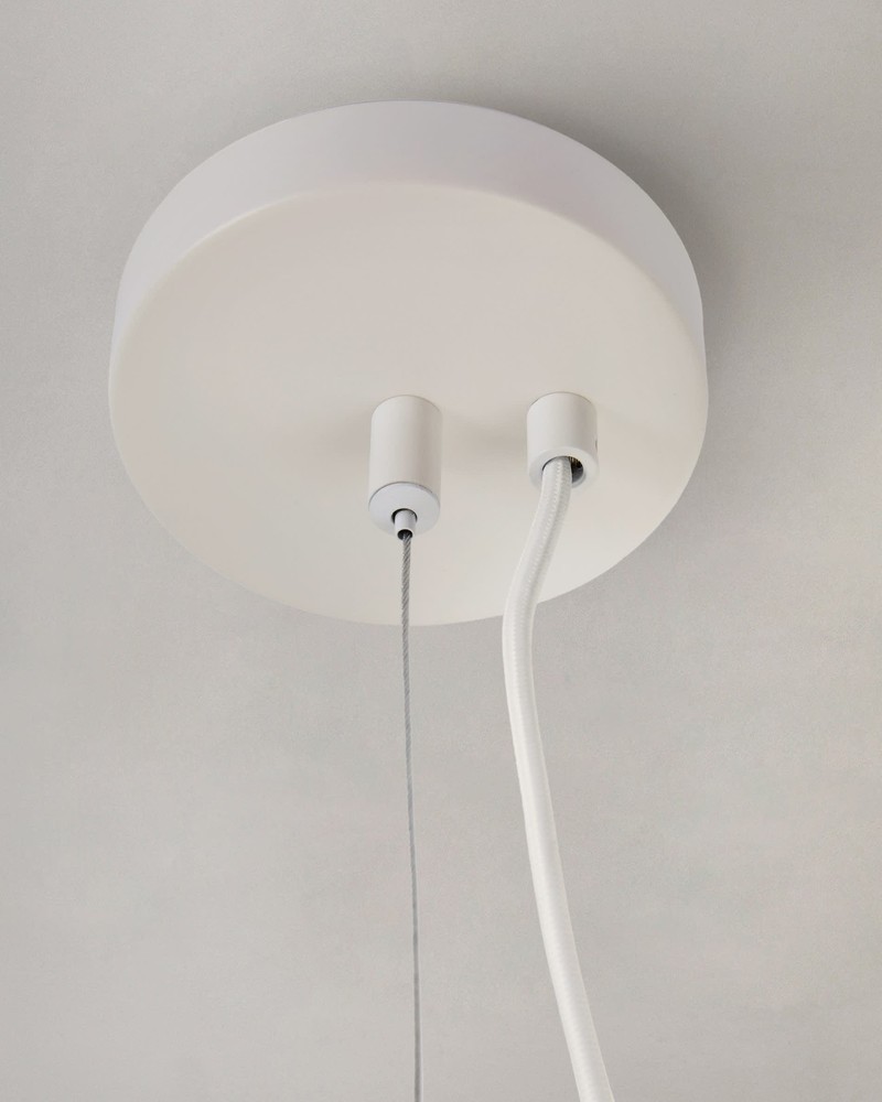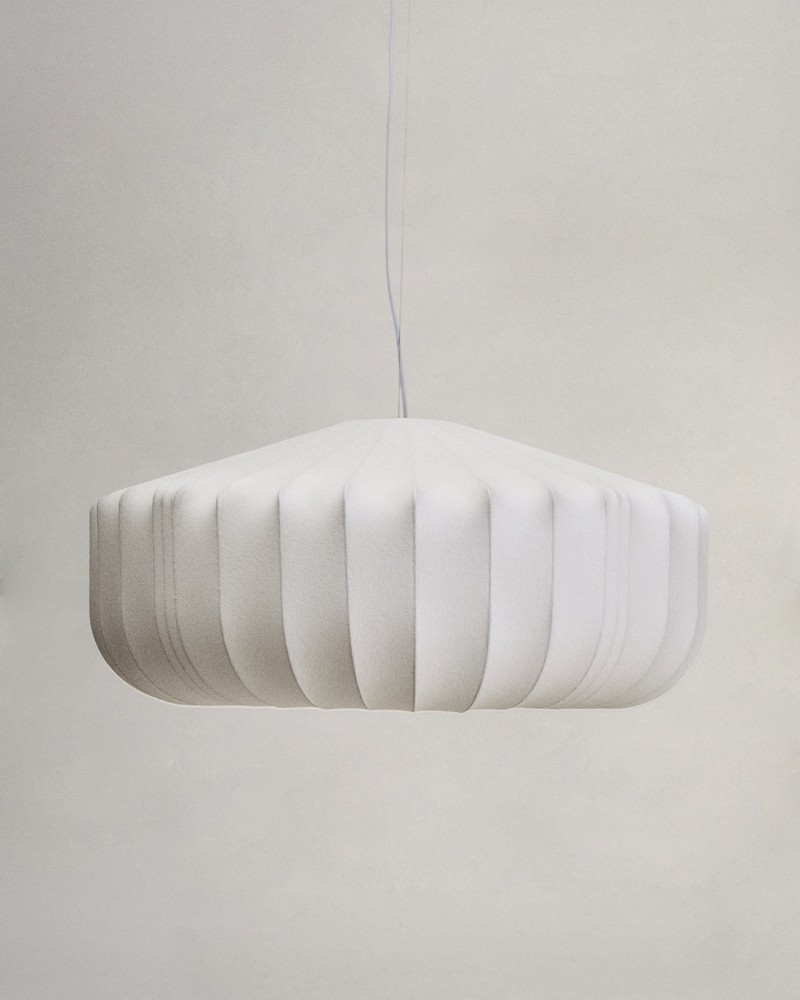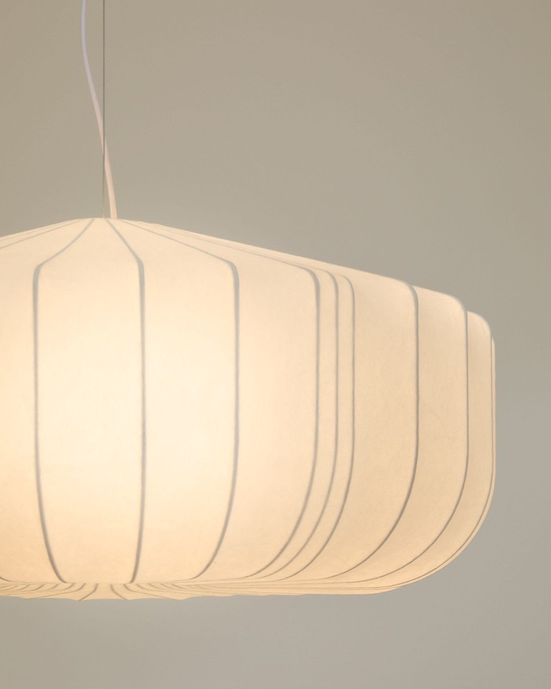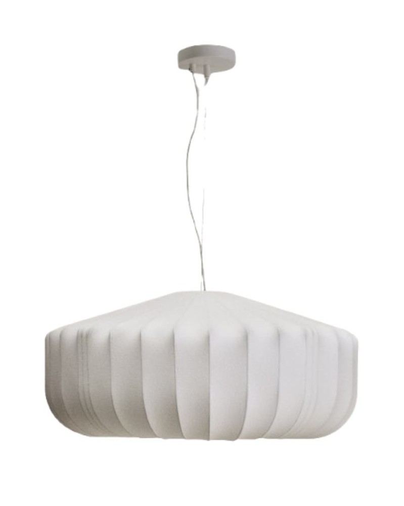 Diese beeindruckende Deckenleuchte vereint künstlerisches Design mit innovativer Handwerkskunst und wird so zum markanten Highlight in jedem Raum. Der elegante Schirm aus weißer Seide entsteht durch eine aufwendige Technik: Synthetikfasern werden auf eine rotierende Basis aus Stahlstäben aufgesprüht, die als stabile Trägerstruktur dienen. Das Ergebnis ist eine feine, luftige Oberfläche mit organischer Anmutung, die das Licht sanft streut und für eine angenehme, warme Atmosphäre sorgt. Die Stahlstäbe verleihen der Leuchte nicht nur Stabilität, sondern setzen zugleich ein modernes, skulpturales Designstatement. Die Kombination aus zarter Seide und klaren Stahllinien schafft eine harmonische Balance aus Leichtigkeit und Struktur, die in jedem Raum elegant zur Geltung kommt – ideal für Wohnzimmer, Essbereiche oder großzügige Flure. Das Kabel ist mit einer weichen, flexiblen Ummantelung versehen, die ein Verheddern verhindert und die Handhabung erleichtert. Mit einer Kabellänge von 260 cm lässt sich die Deckenleuchte flexibel in unterschiedlichen Raumhöhen und Positionen installieren, sodass sie sich ideal an Ihre individuellen Bedürfnisse anpasst. Mit großzügigen Maßen von ca. 76 x 300 x 76 cm (Breite x Höhe x Tiefe) bietet die Leuchte eine beeindruckende Präsenz, ohne dabei wuchtig zu wirken. Sie spendet angenehmes, diffuses Licht, das Räume freundlich ausleuchtet und gleichzeitig dekorative Akzente setzt. Diese Deckenleuchte verbindet innovative Fertigung, hochwertige Materialien und kunstvolles Design zu einem einzigartigen Lichtobjekt – ein stilvolles Statement, das Räume elegant aufwertet und eine warme, einladende Atmosphäre schafft.