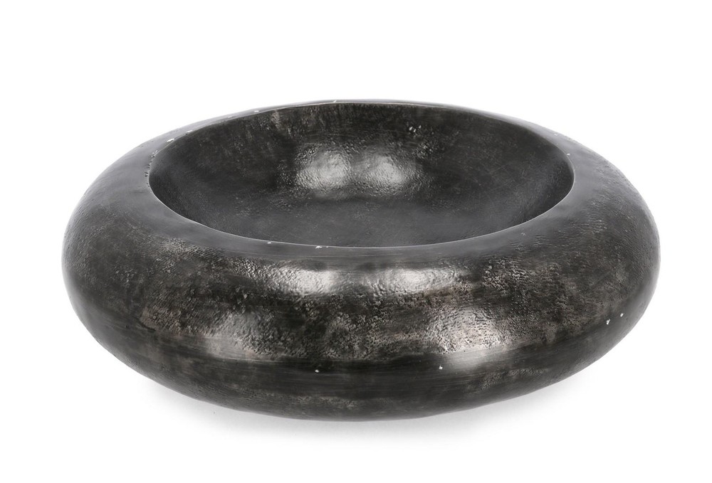 Setzen Sie stilvolle Akzente in Ihrem Wohn- oder Außenbereich mit dieser handgefertigten Dekorschale aus hochwertigem Aluminium. Die runde Form und das elegante schwarze Finish verleihen der Schale einen modernen, zeitlosen Charakter, der sich harmonisch in verschiedenste Einrichtungsstile einfügt. Jedes Exemplar ist ein Unikat: Kleine Abweichungen in Farbe, Farbton oder Oberfläche sowie individuelle Strukturen und kleine Besonderheiten gelten als einzigartiges Merkmal handwerklicher Fertigung. Diese Schale erzählt somit ihre eigene Geschichte und wird zu einem besonderen Blickfang in Ihrem Zuhause oder Garten. Dank ihrer robusten Aluminiumkonstruktion kann die Schale sowohl im Innen- als auch im Außenbereich eingesetzt werden. Mit den großzügigen Maßen von ca. 45 x 11 x 45 cm (B x H x T) zieht sie in jedem Raum oder auf jeder Terrasse sofort alle Blicke auf sich. Diese handgefertigte Dekorschale vereint edles Design, hohe Handwerkskunst und vielseitige Dekorationsmöglichkeiten – ein elegantes Statement, das Ihrem Wohnraum oder Außenbereich Charakter und Persönlichkeit verleiht.